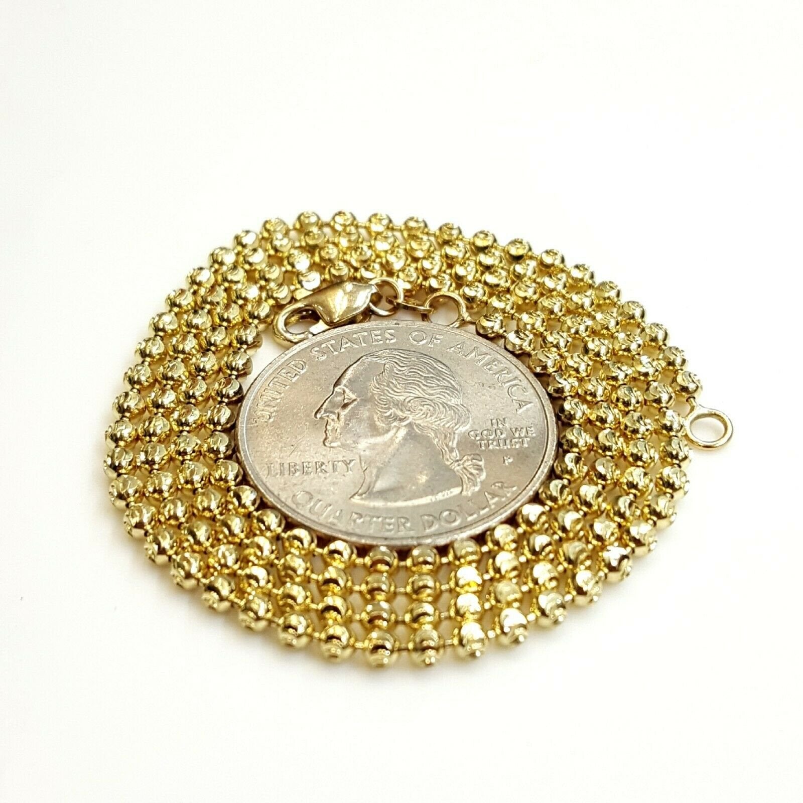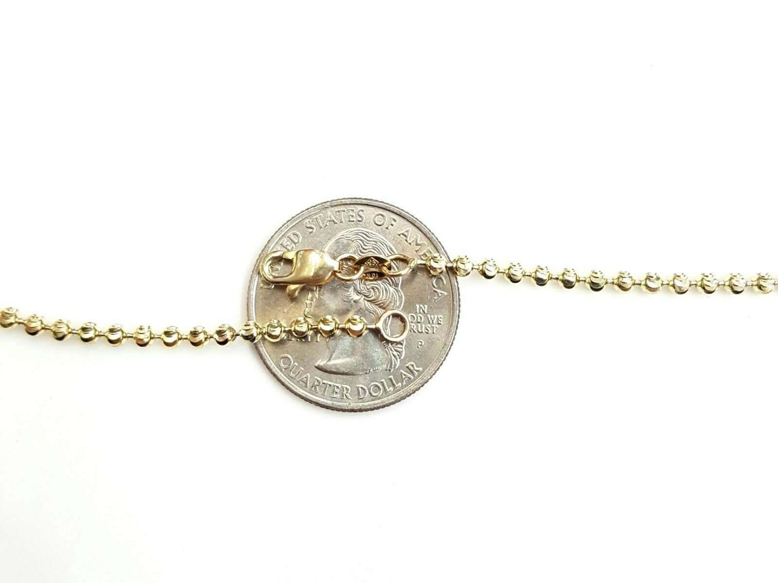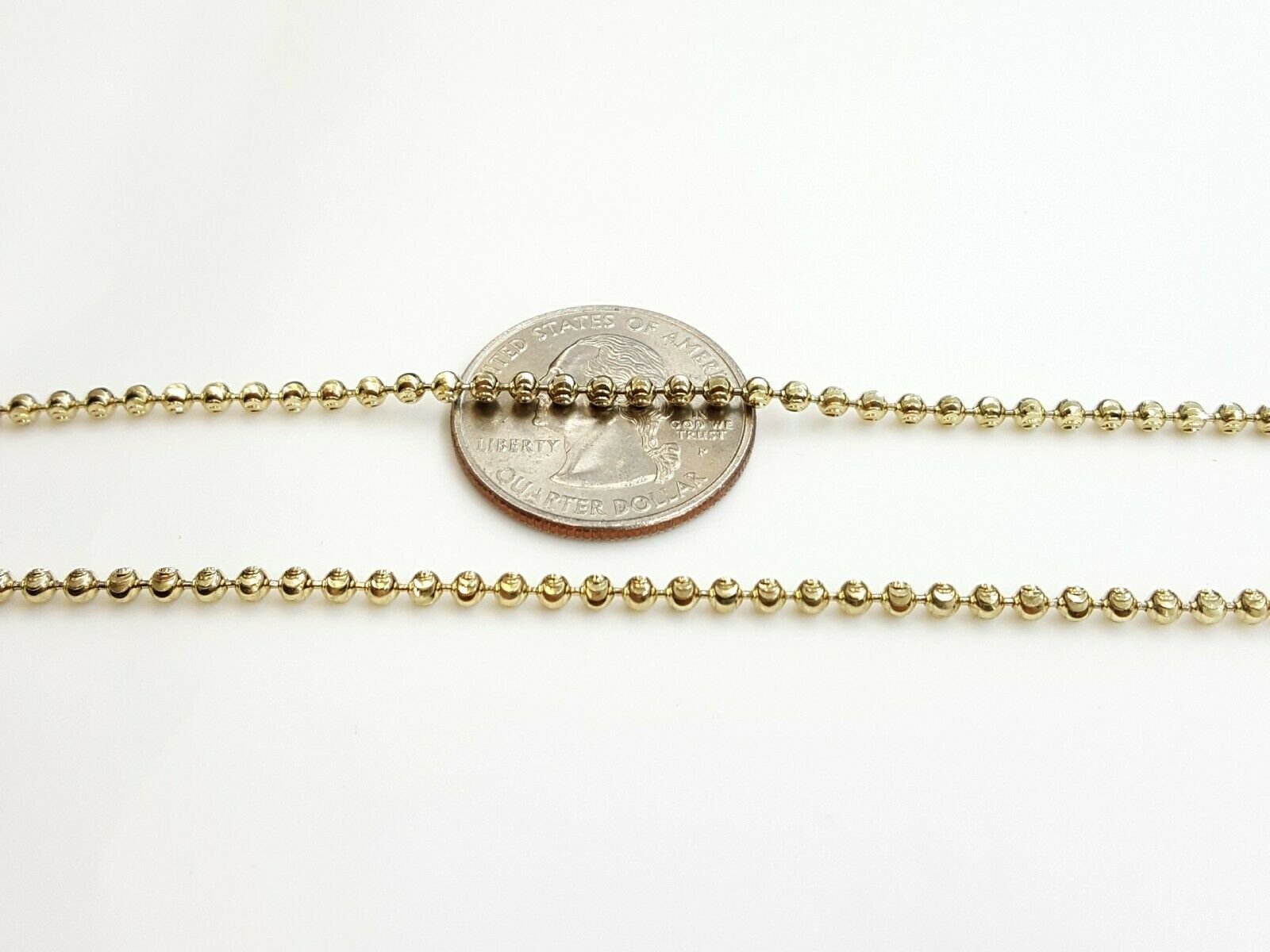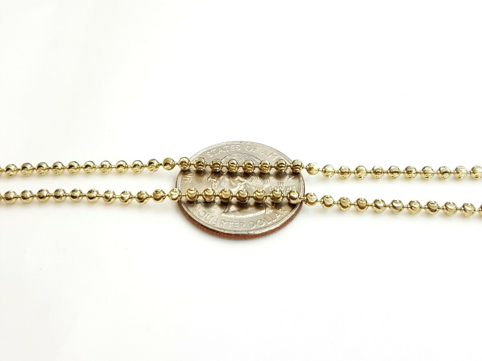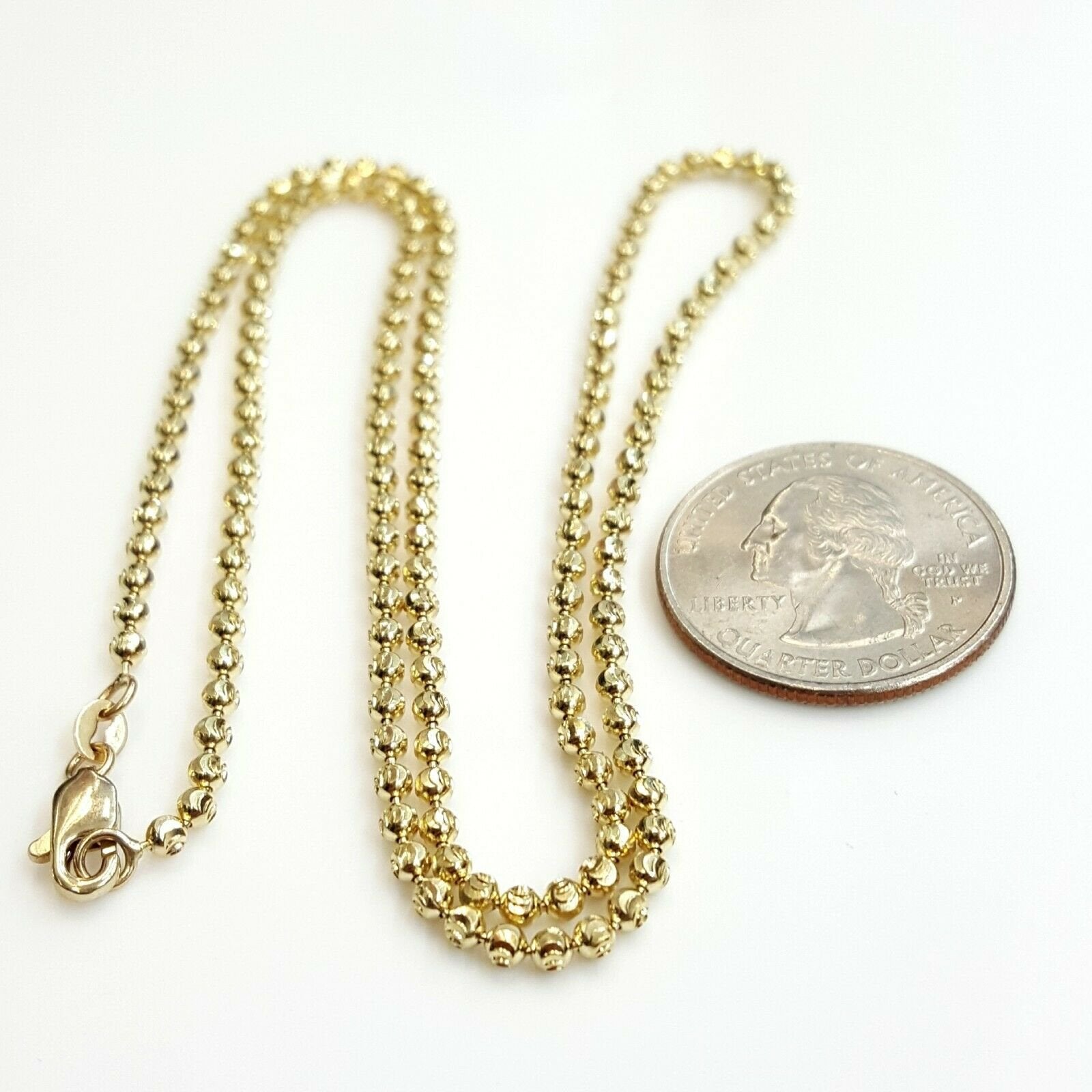 100% Authentic Item description:  Metal: gold  Condition: brand new  Purity: 10k  Color: Yellow gold  Length: 20 inches long  Ball Width: 2.5mm Diameter  Weight: 9.5 grams  Other length available please ask for price Please refer to the photo of the item next to a quarter for comparison purposes.Ask me any questions you may have before making a purchase.       Shipping:  Your order will be professionally packed and shipped. US free shipping is for the 48 Continental states. For shipping to Alaska, Hawaii and Puerto Rico please contact us for a quote. We also offer overnight shipping for the cost of $19.99 which the estimated delivery time is one business day.   Return Policy: 30 Day Money Back Guarantee  We want your online shopping experience to be risk free. With our hassle-free return policy, if you are not completely satisfied with your purchase, simply ship the item back to us in its original, unused condition (including all original packaging and/or tags) within 14 days for a full refund, less shipping costs. Please email us for a return authorization number prior to shipping the item back.  Be sure to add me to your favorites list! Check out my other items! Buy with confidence!