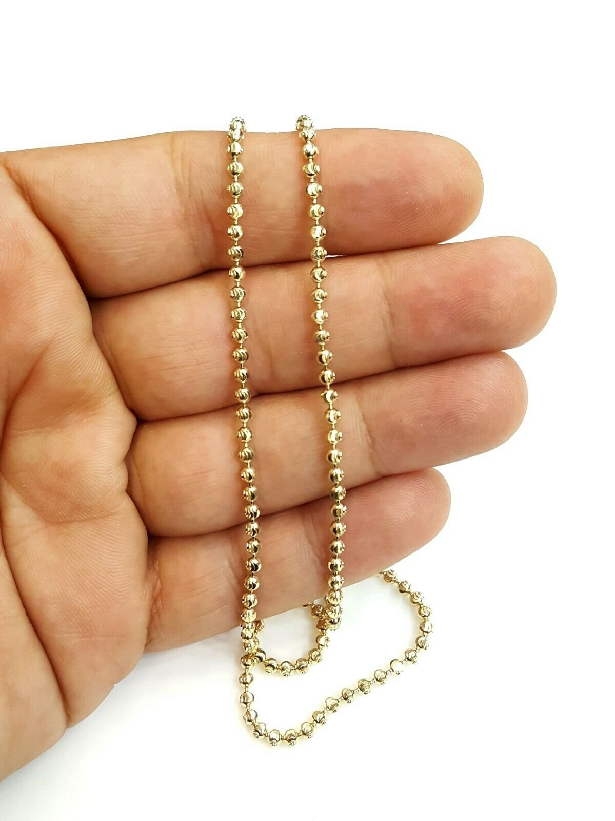 10K yellow gold 2.5mm ball bead chain moon cut Necklace fine jewelry 9.5g 20"