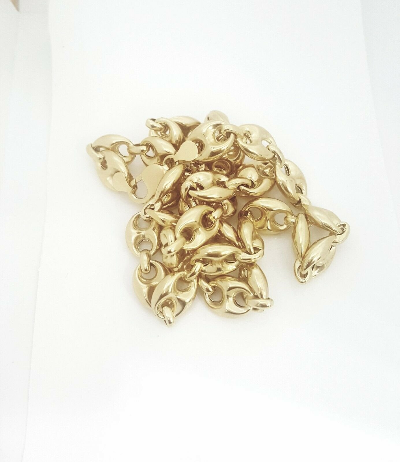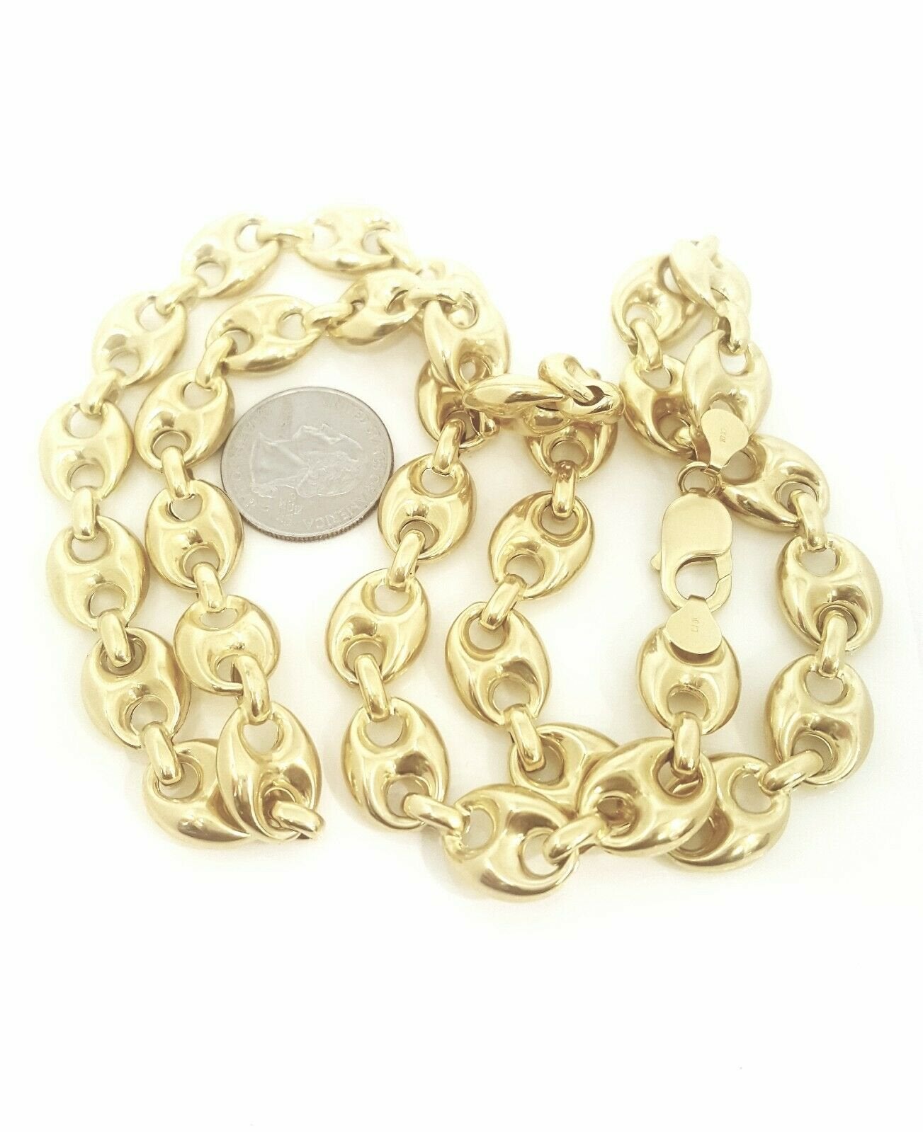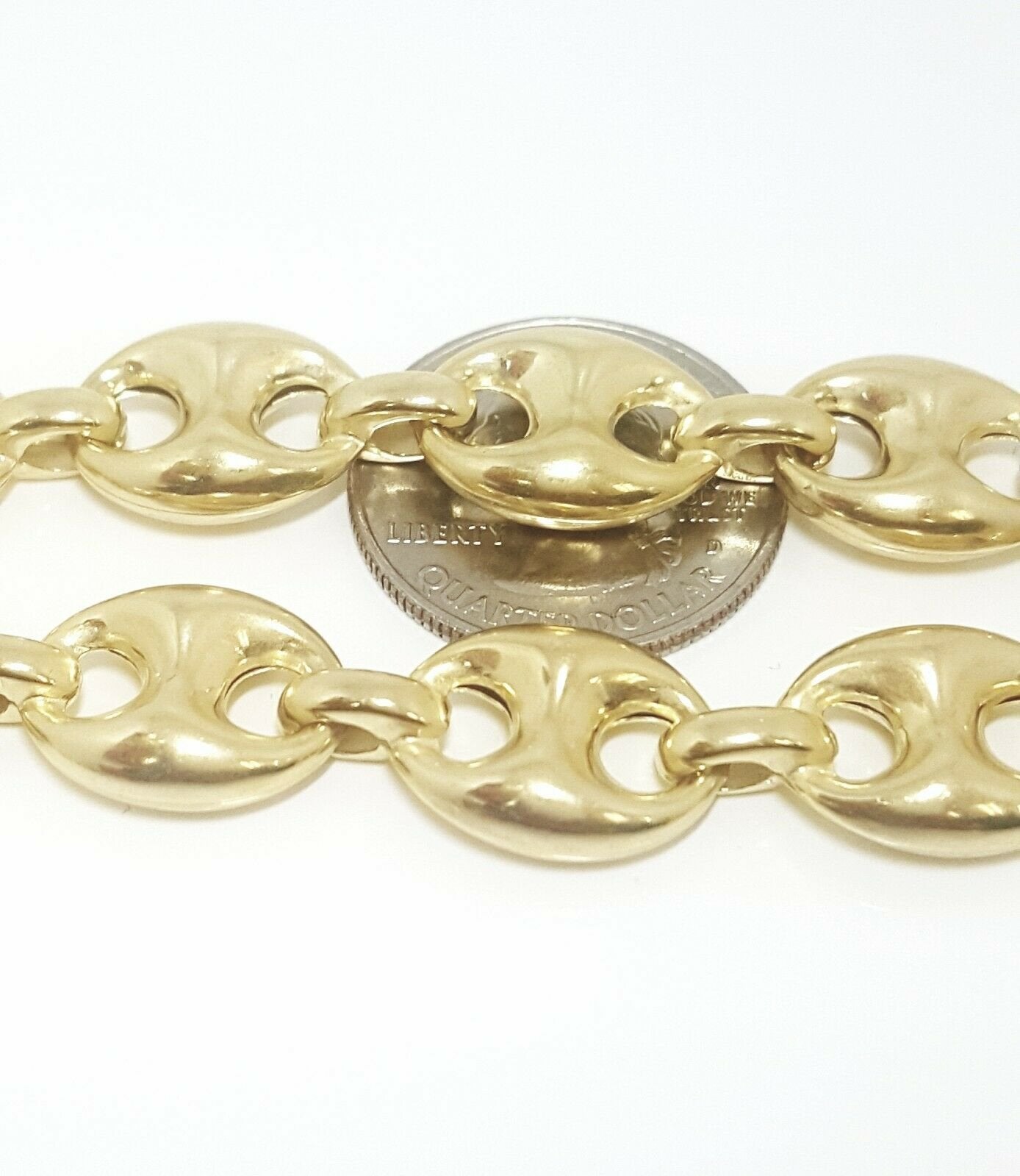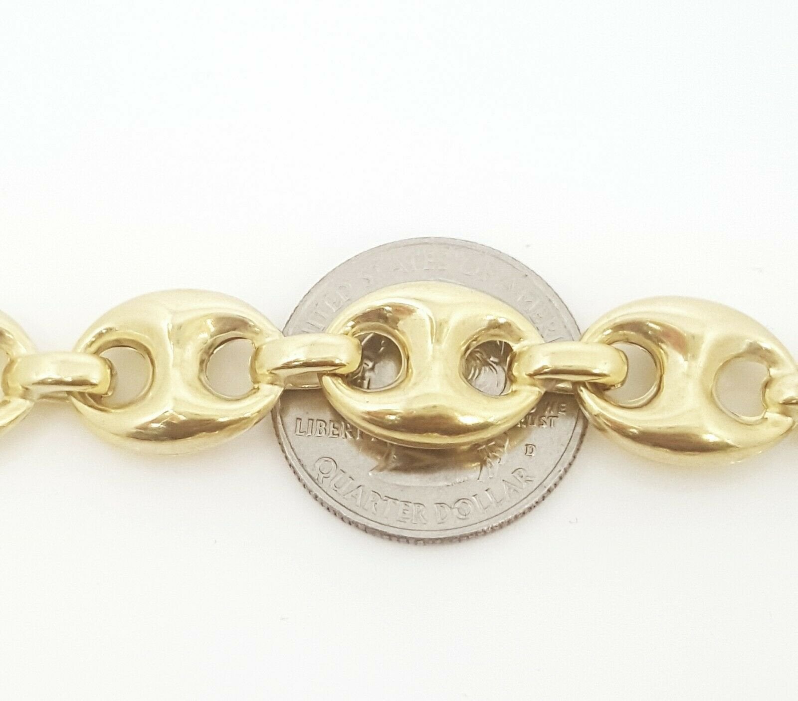Item description: Beautiful New 10K yellow gold 13mm hollow puff Gucci link chain Necklace 46.6 Grams 28" Long. Metal: gold Condition: brand new Style: hollow puff Gucci link Purity: 10k Color: yellow gold Length: 28 inches long Width: 13mm (widest point). Weight: 46.6 grams Other length available please ask for price  Please refer to the photo of the item next to a quarter for comparison purposes. Shipping: Your order will be professionally packed and shipped. US free shipping is for the 48 Continental states. For shipping to Alaska, Hawaii and Puerto Rico please contact us for a quote. We also offer overnight shipping for the cost of $25.00 which the estimated delivery time is one business day. Return Policy:  30 Day Money Back Guarantee We want your online shopping experience to be risk free. With our hassle-free return policy, if you are not completely satisfied with your purchase, simply ship the item back to us in its original, unused condition (including all original packaging and/or tags) within 14 days for a full refund, less shipping costs. Please email us for a return authorization number prior to shipping the item back. Be sure to add me to your favorites list! Check out my other items! Buy with confidence!