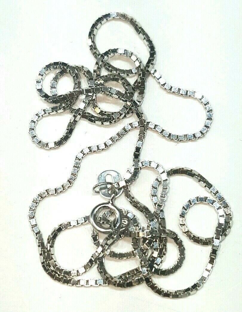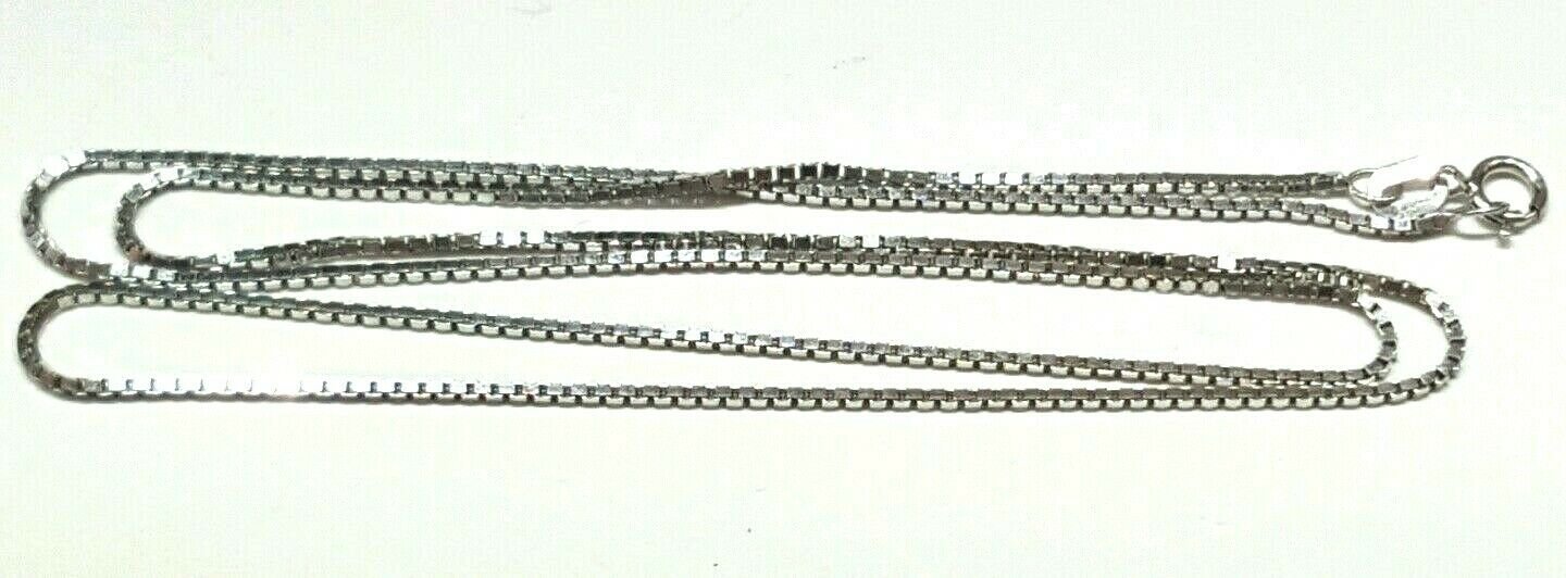 New 14K white Gold 0.95mm Square Box Chain Necklace fine gift jewelry 3.4g 24"