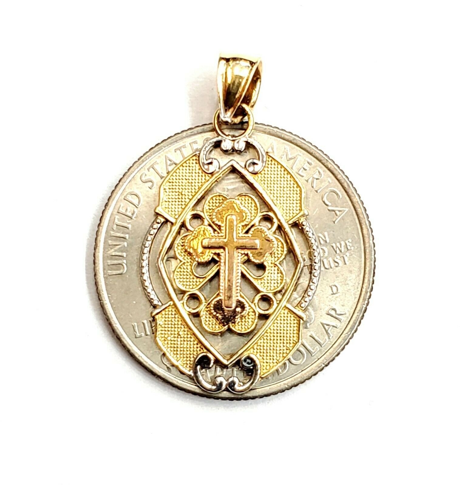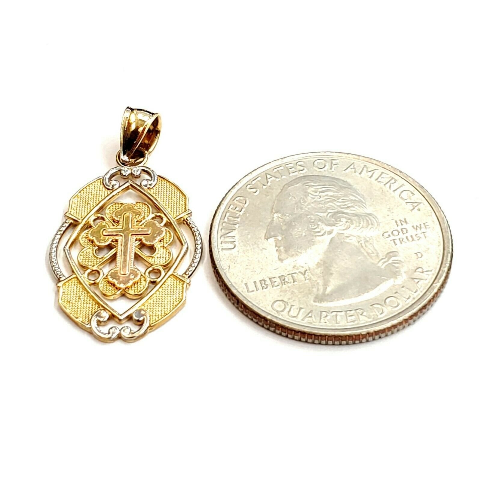 14k solid 3 color gold cross Pendant charm fine gift religious jewelry unisex 2g