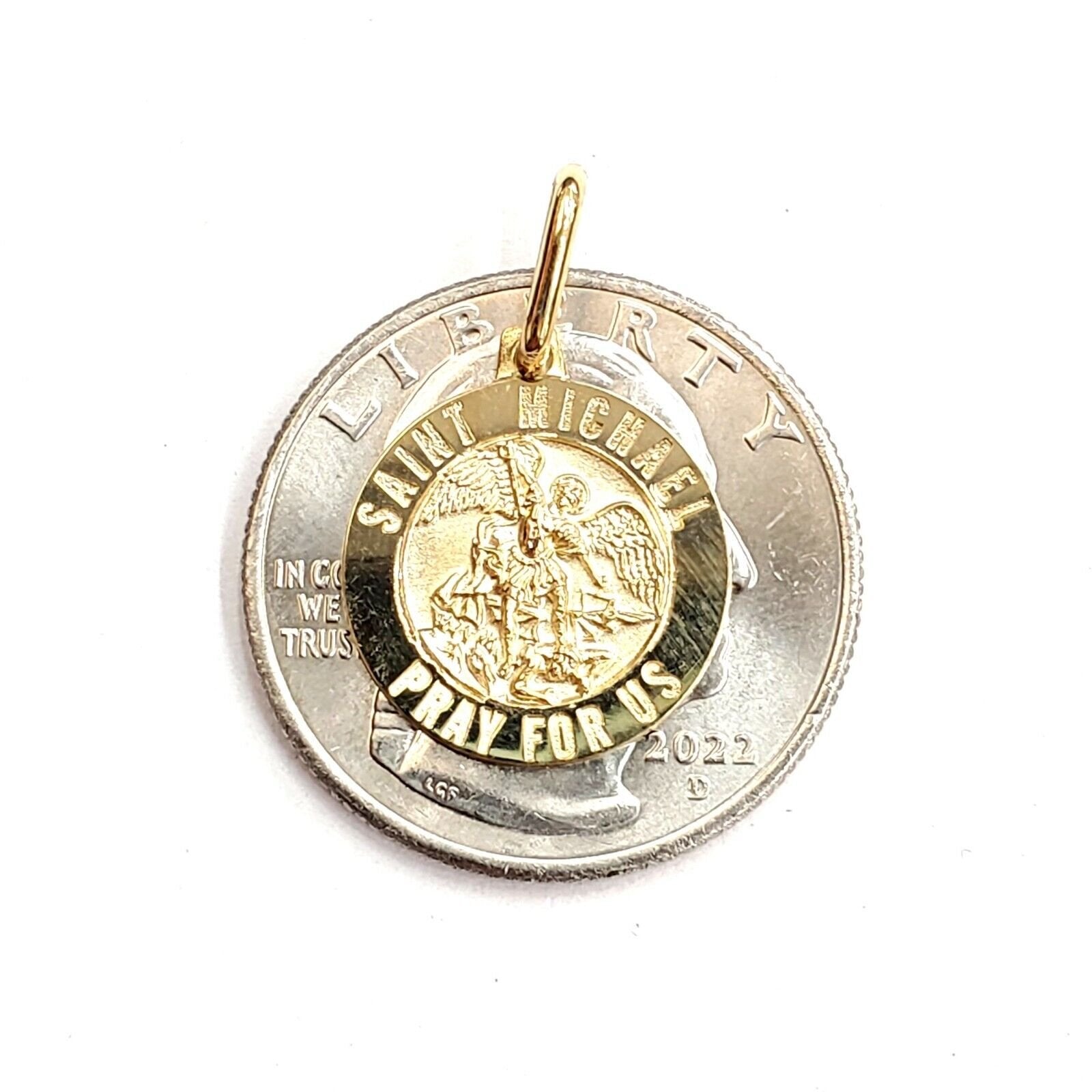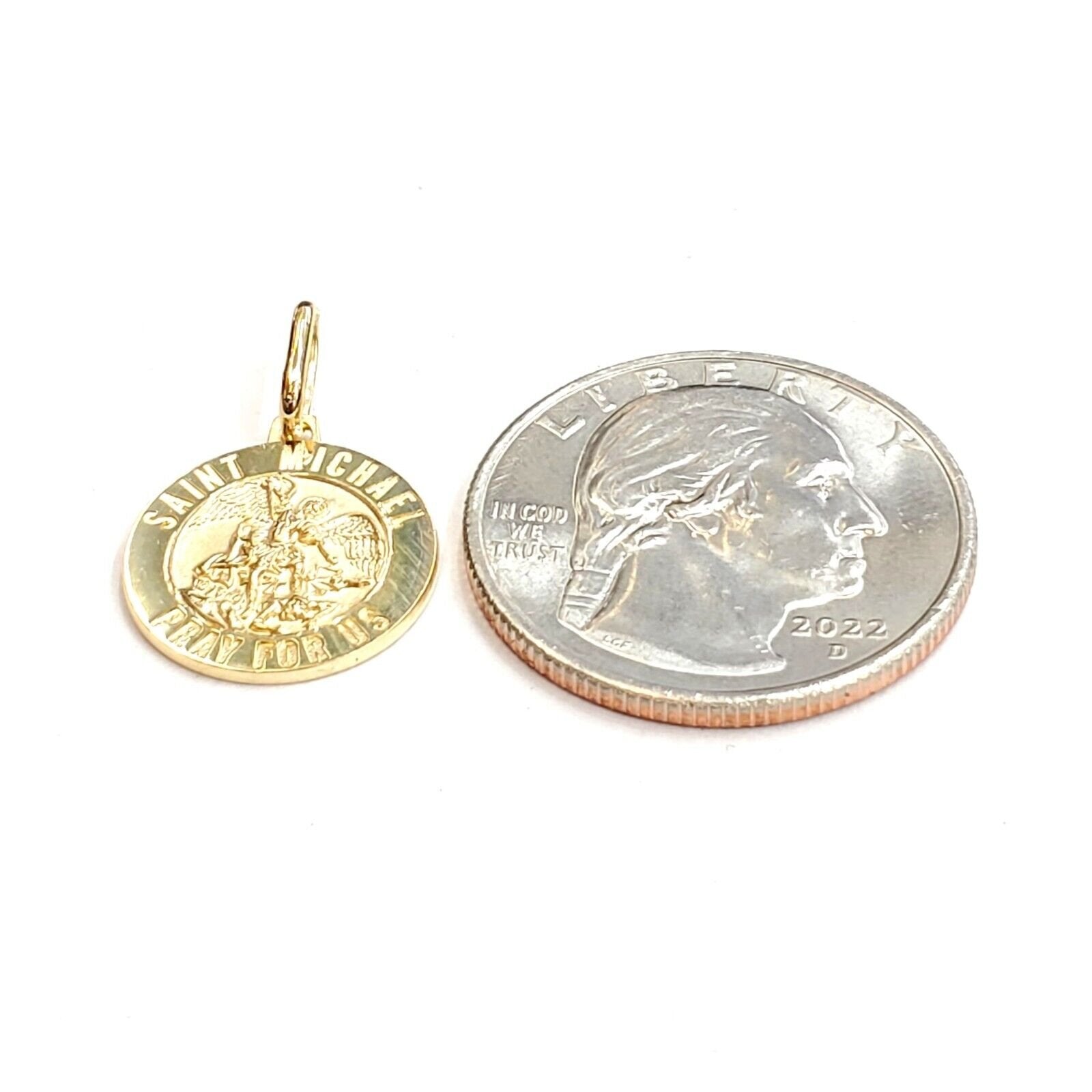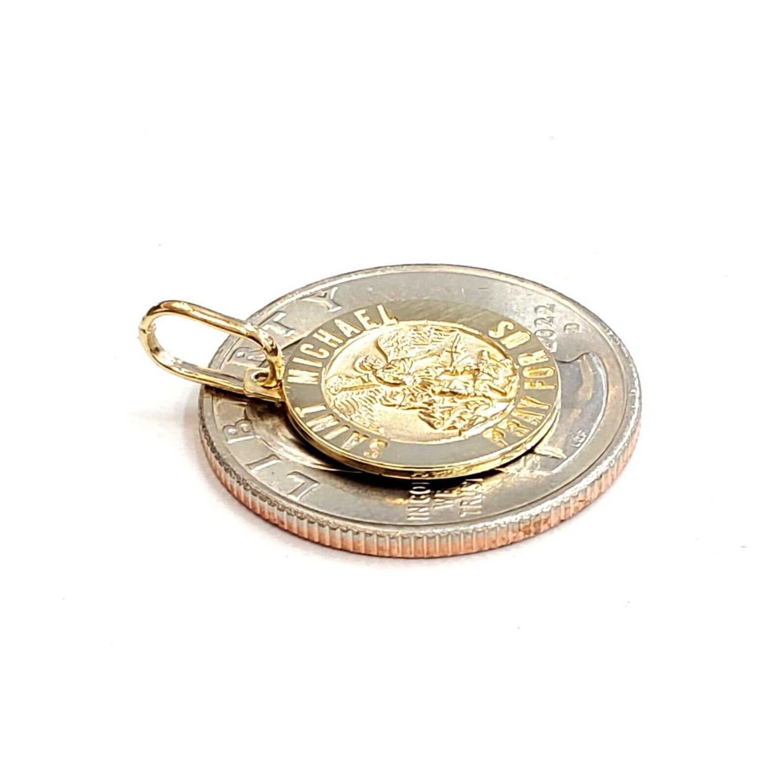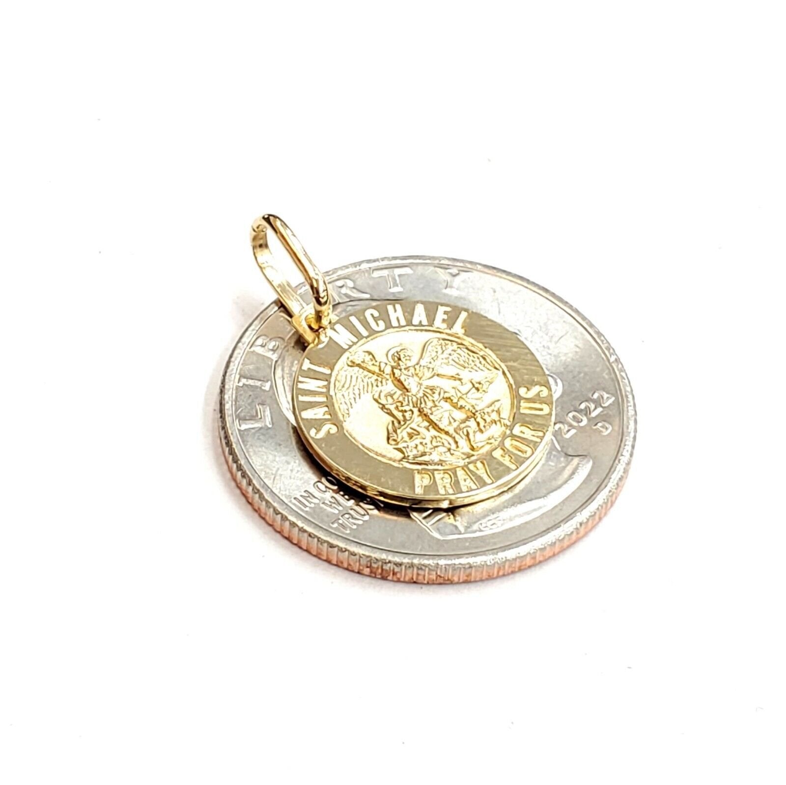 14k solid yellow gold round saint Michael pendant fine religious gift 0.60" 2g