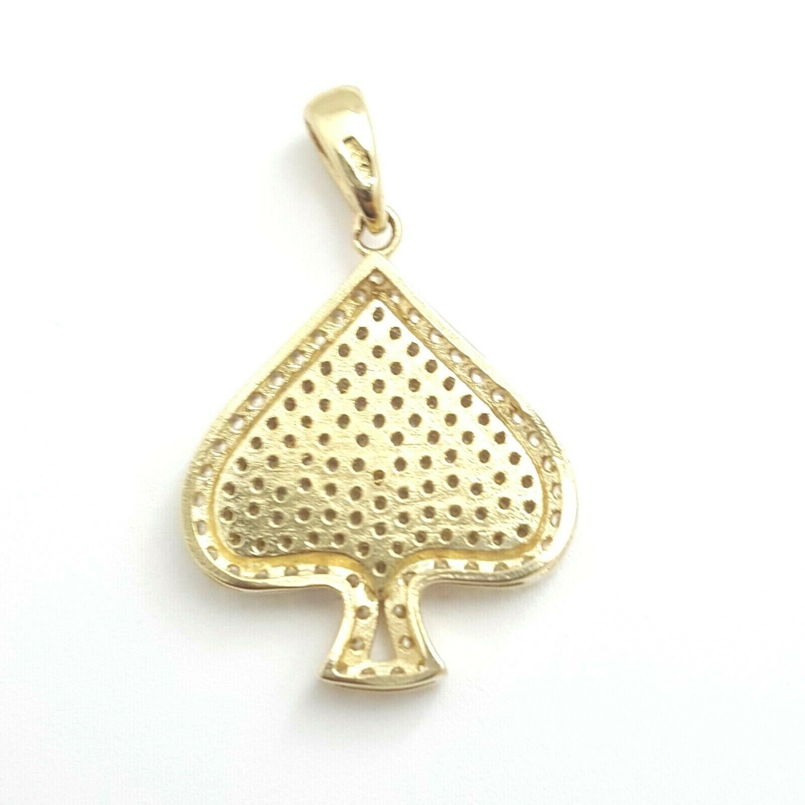 Beautiful brand new 14k yellow gold Ace of spade pendant with Cubic zirconia.