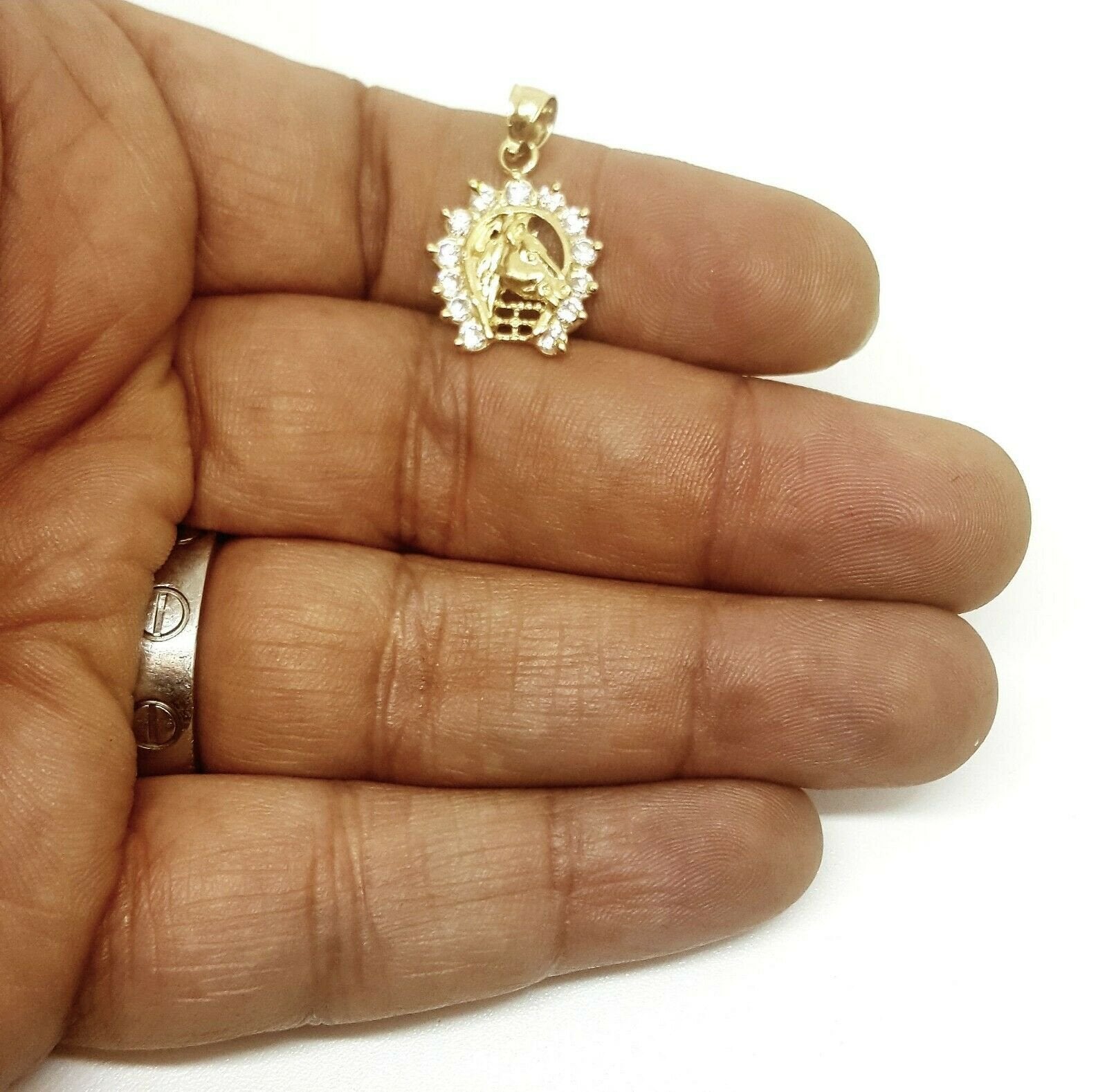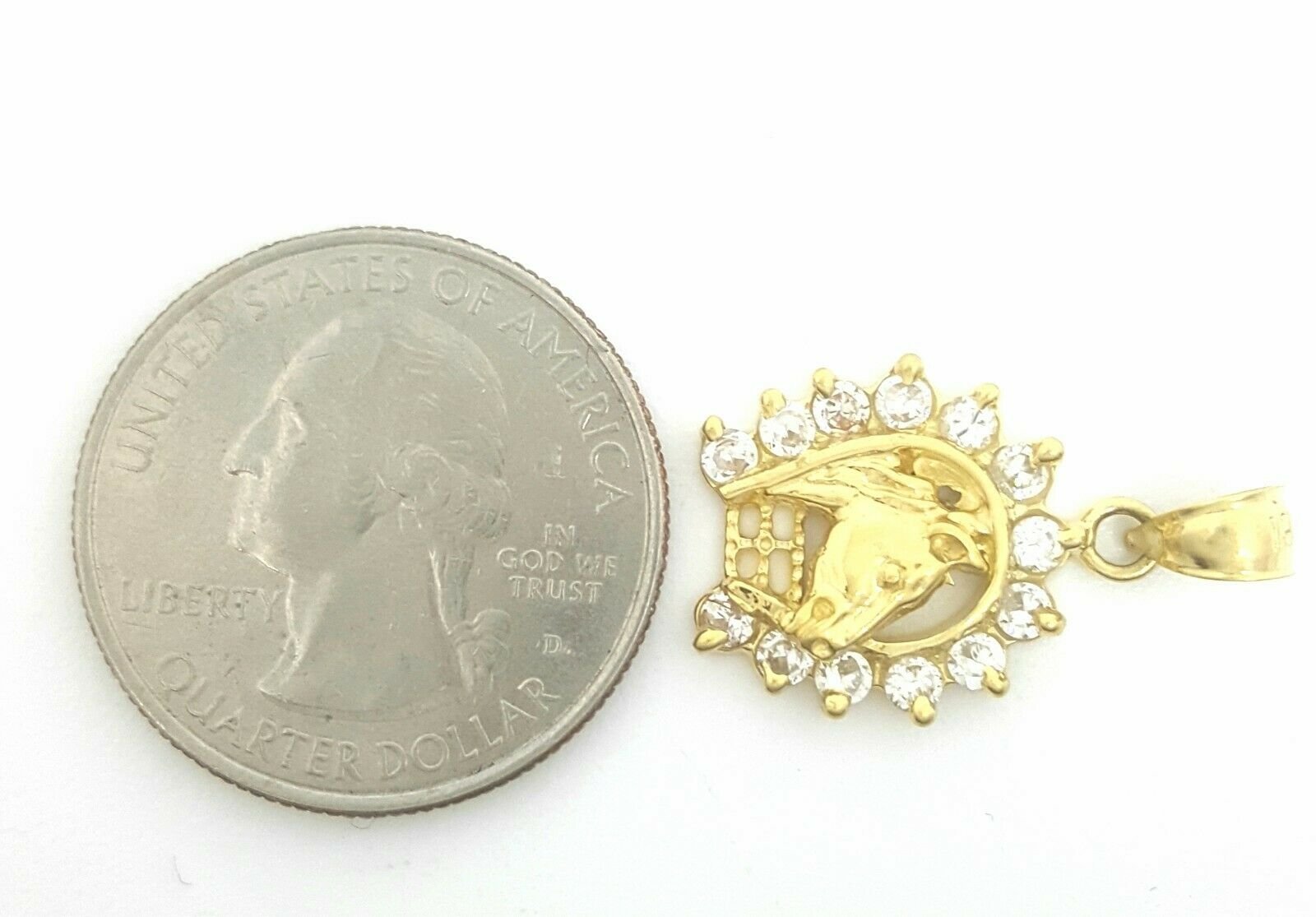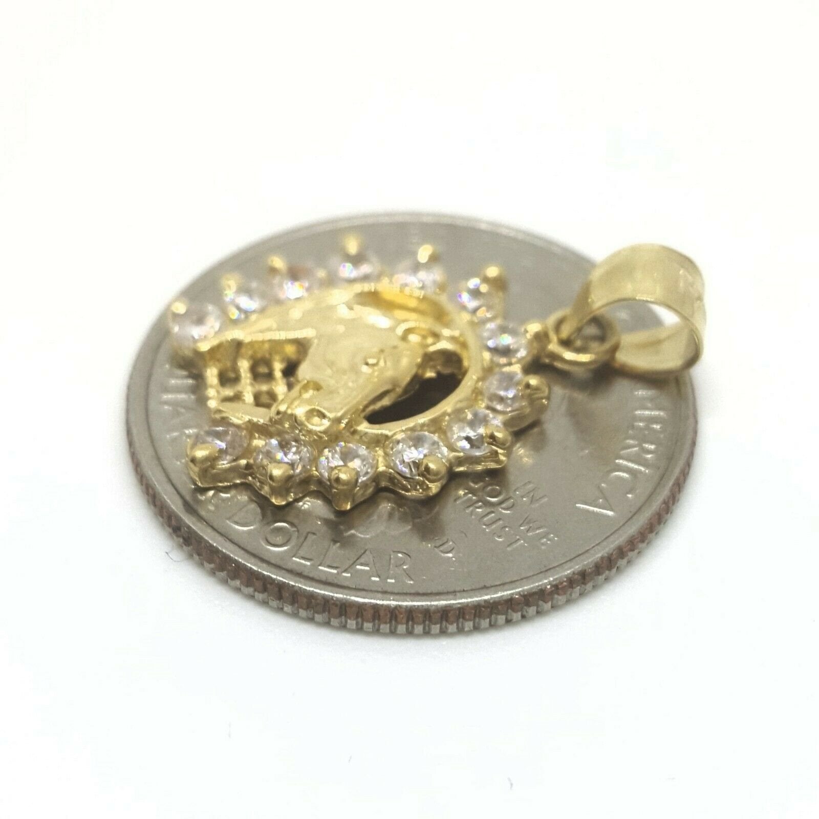 (100% AUTHENTIC) 14k yellow gold horseshoe pendant charm with cubic zirconia. "Comes with a gift box" 14K yellow Solid Gold pendant charm. Solid 14K gold, not plated. Nicely polished and shiny. Stamped 14K for Authenticity. ADDITIONAL INFO: REAL 14K Yellow Gold. Polished, Shiny 2.4 grams. 0.62 inches top to bottom without bail. 0.60 inches left to right. Please refer to the photo of the item next to a quarter for comparison purposes.     Shipping: Your order will be professionally packed and shipped. US free shipping is for the 48 Continental states. For shipping to Alaska, Hawaii and Puerto Rico please contact us for a quote. We also offer overnight shipping for the cost of $19.99 which the estimated delivery time is one business day.   Return Policy: 30 Day Money Back Guarantee We want your online shopping experience to be risk free. With our hassle-free return policy, if you are not completely satisfied with your purchase, simply ship the item back to us in its original, unused condition (including all original packaging and/or tags) within 14 days for a full refund, less shipping costs. Please email us for a return authorization number prior to shipping the item back. Be sure to add me to your favorites list! Check out my other items! Buy with confidence!