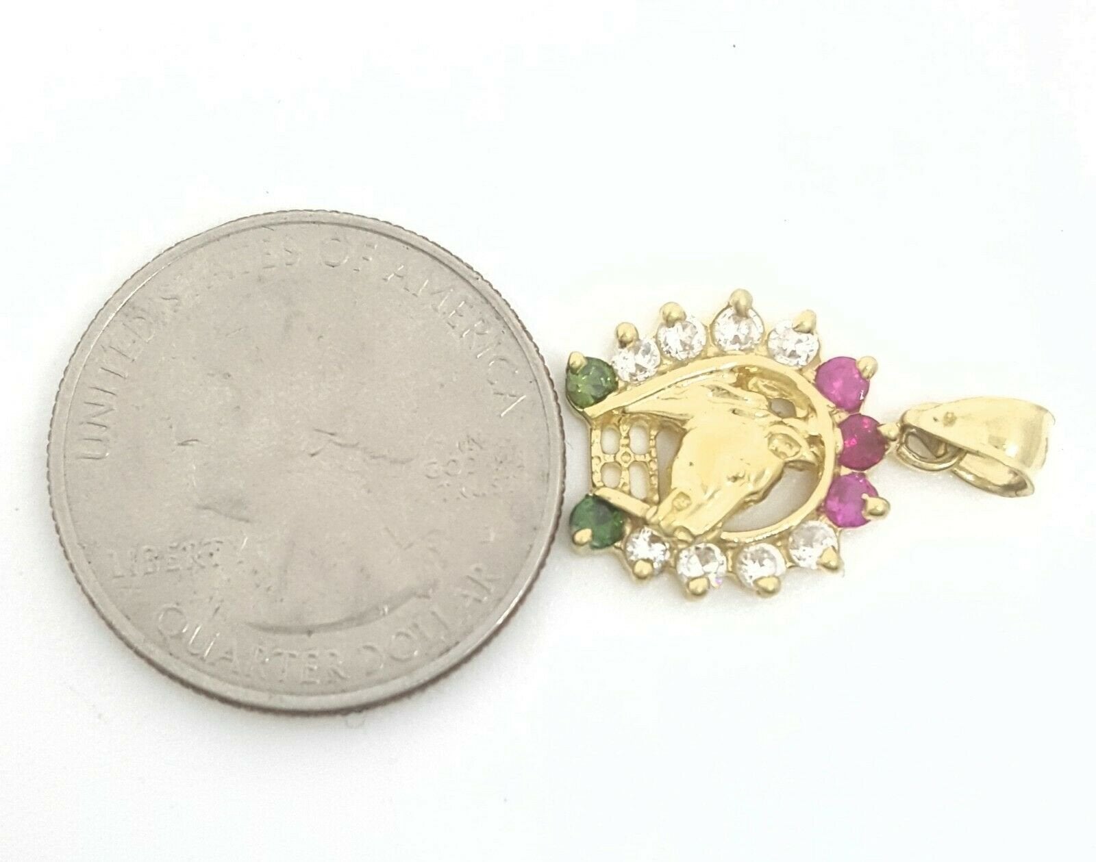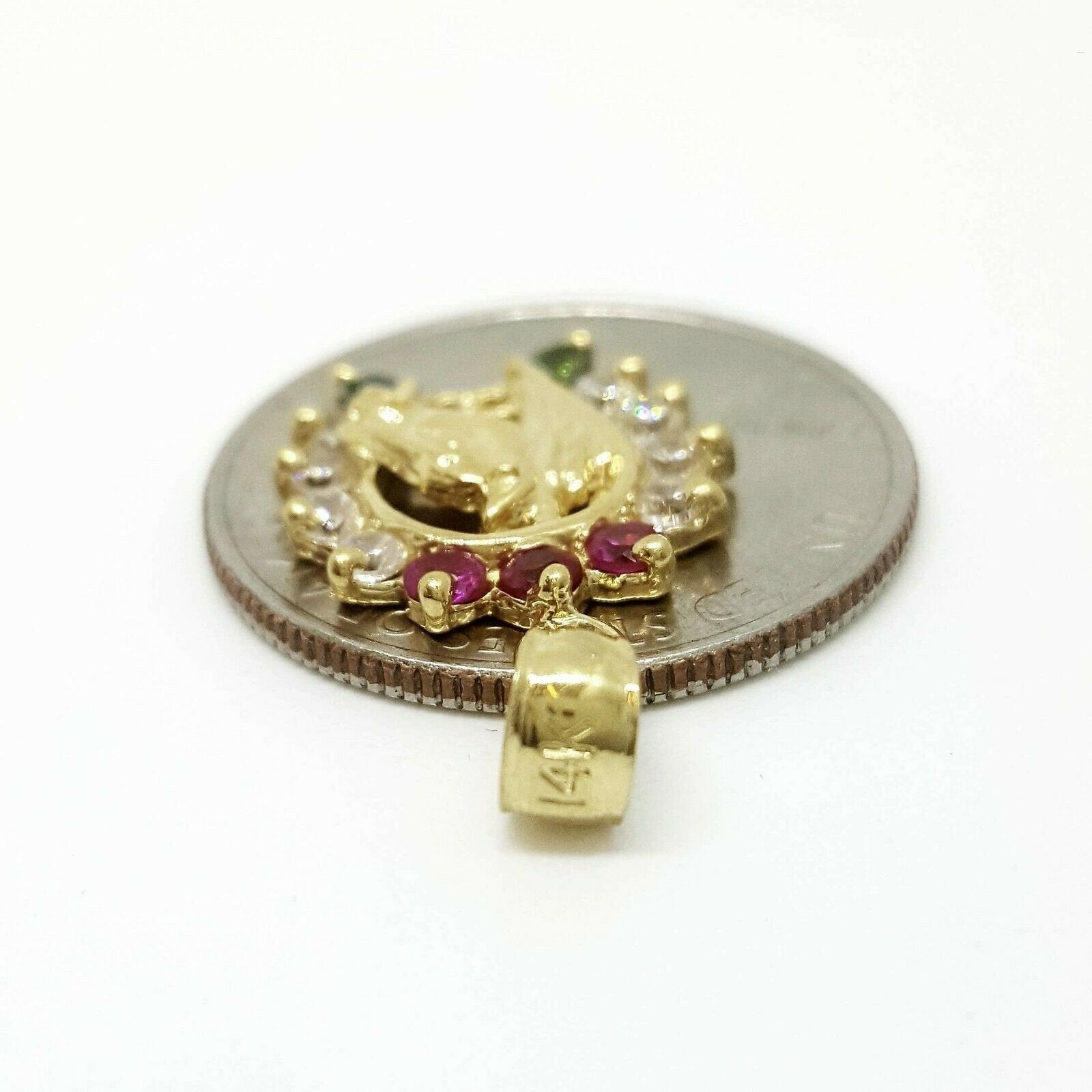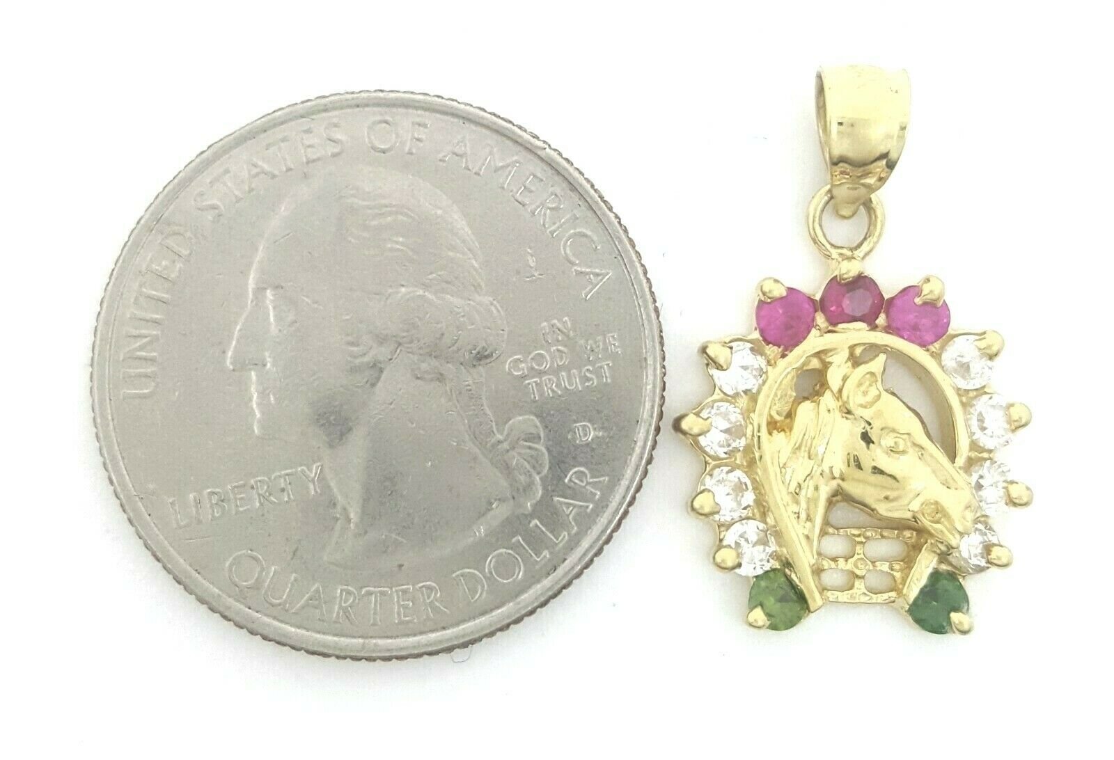 14k yellow gold horseshoe pendant charm with cubic zirconia.