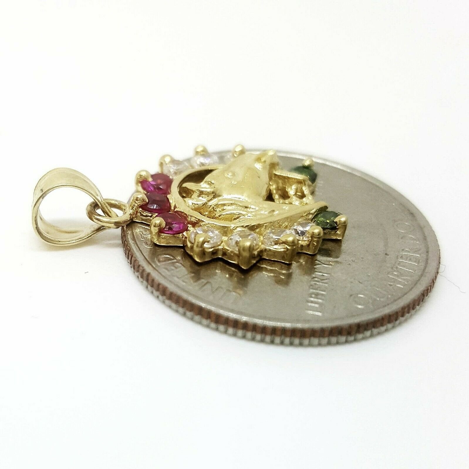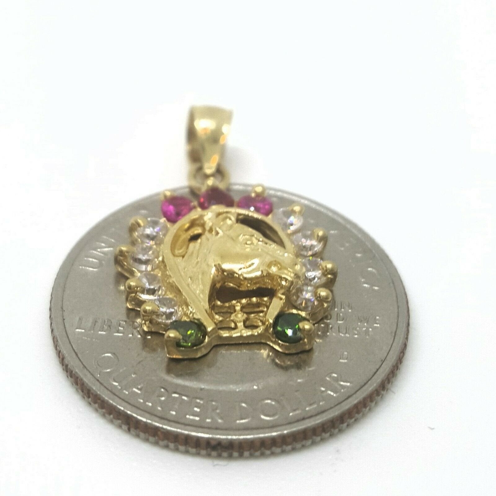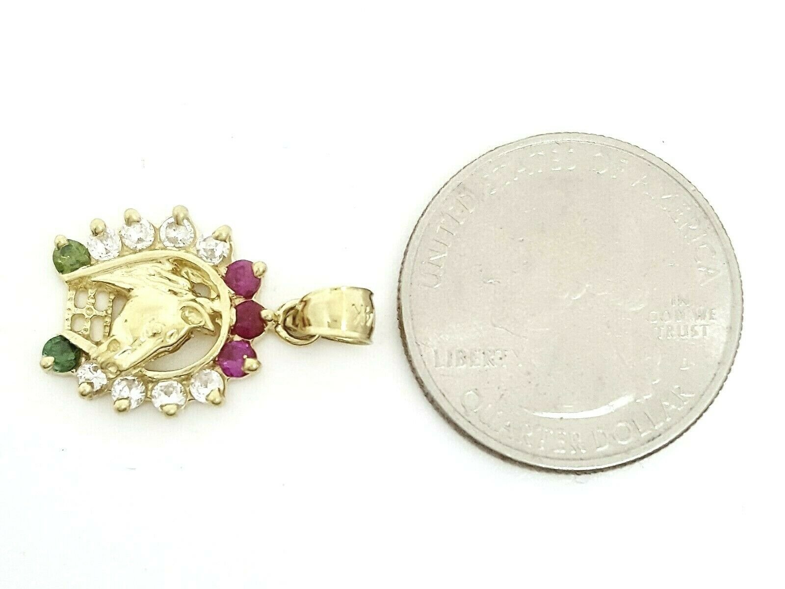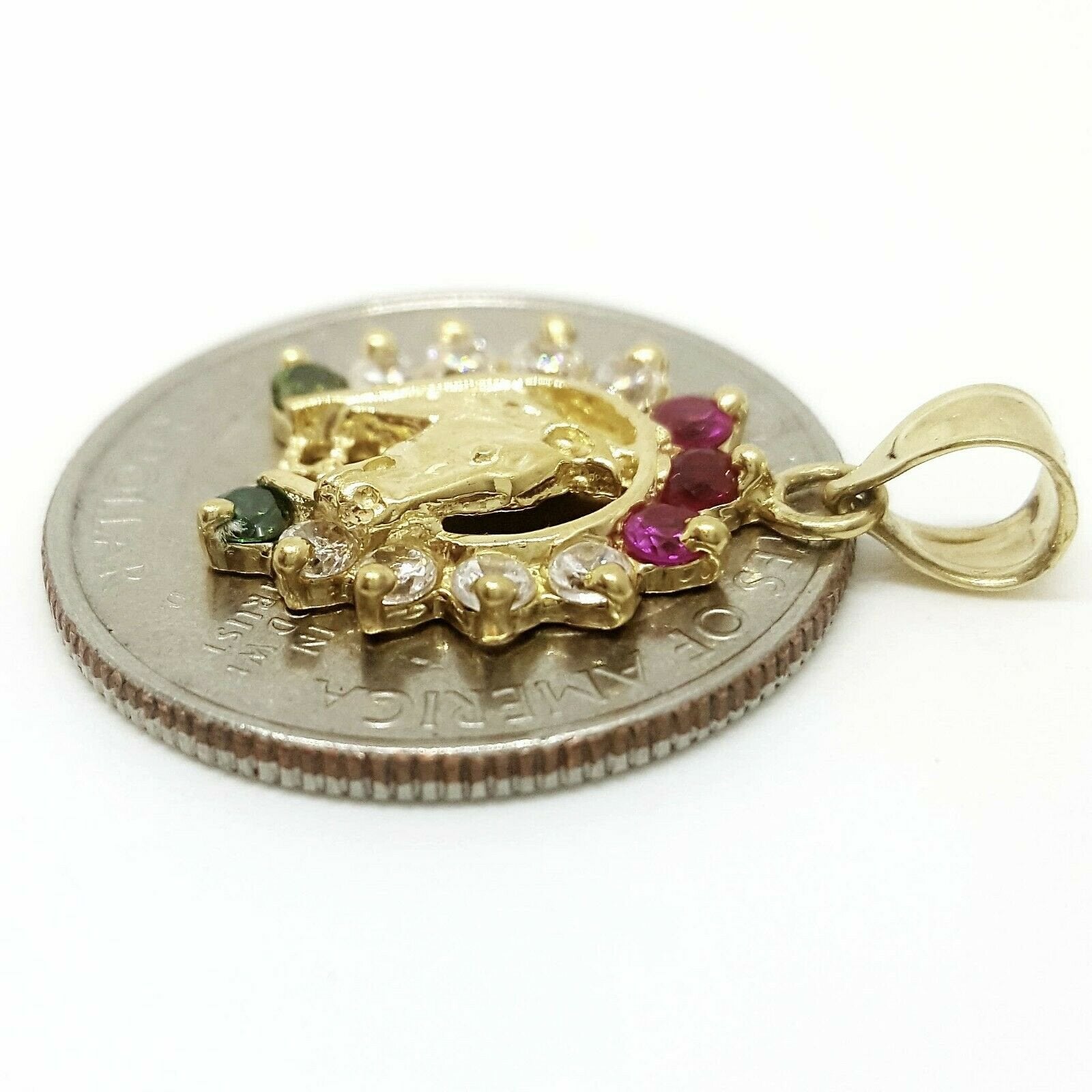 14k yellow gold horseshoe pendant charm with cubic zirconia.