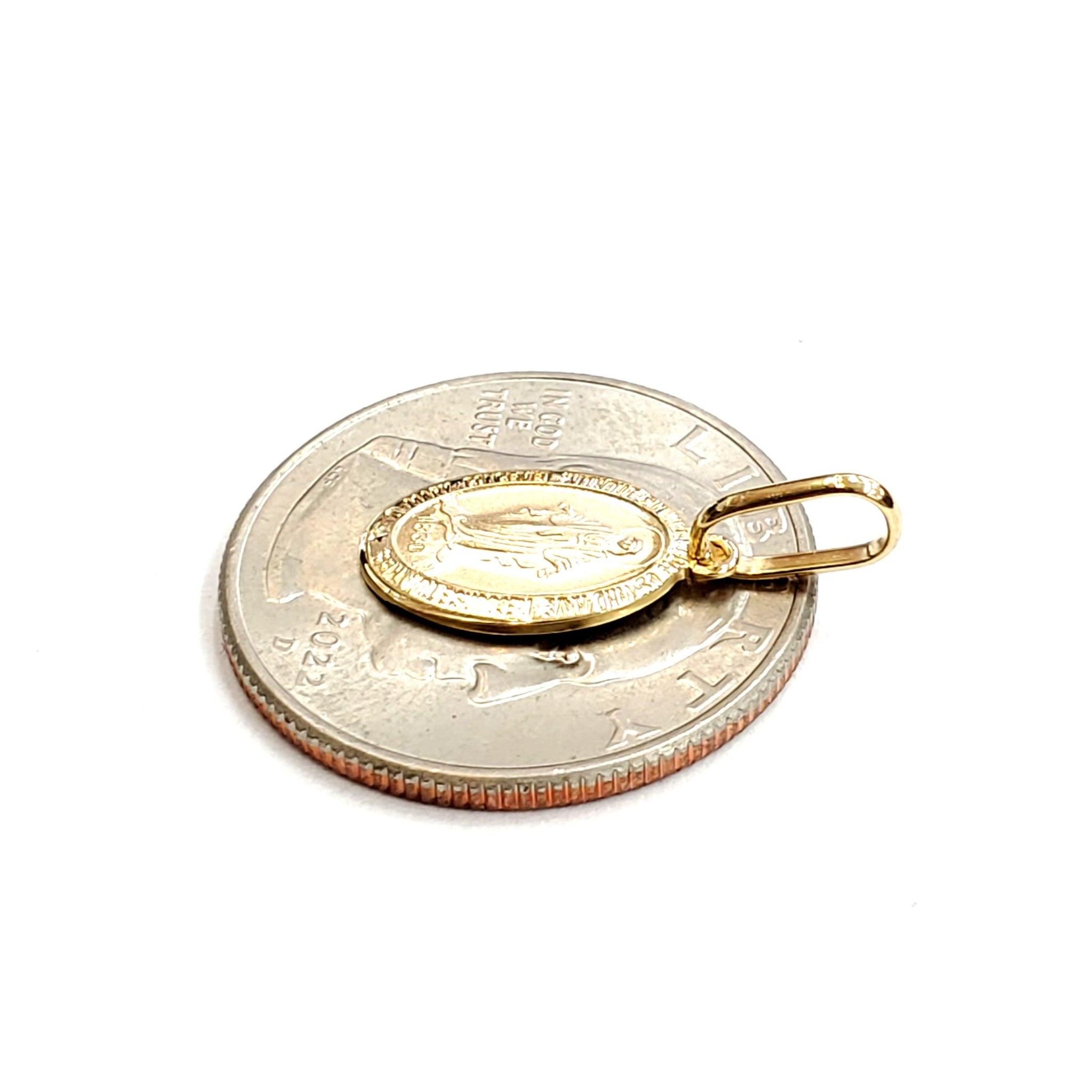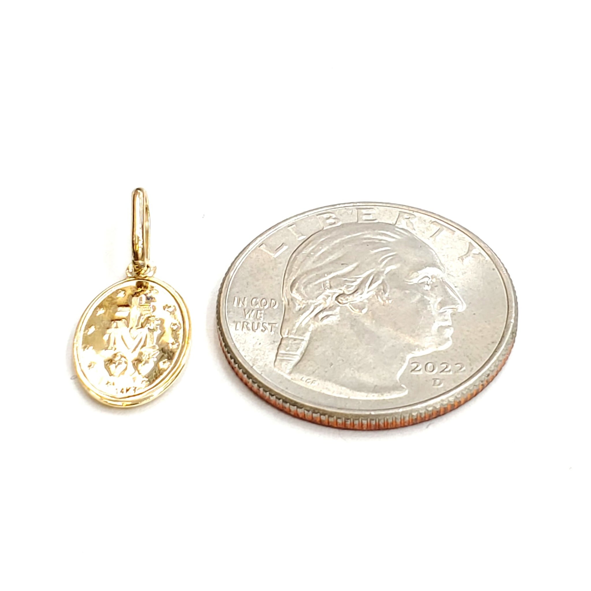 14k yellow gold oval virgin Miraculous Milagrosa pendant charm religious 1.2g