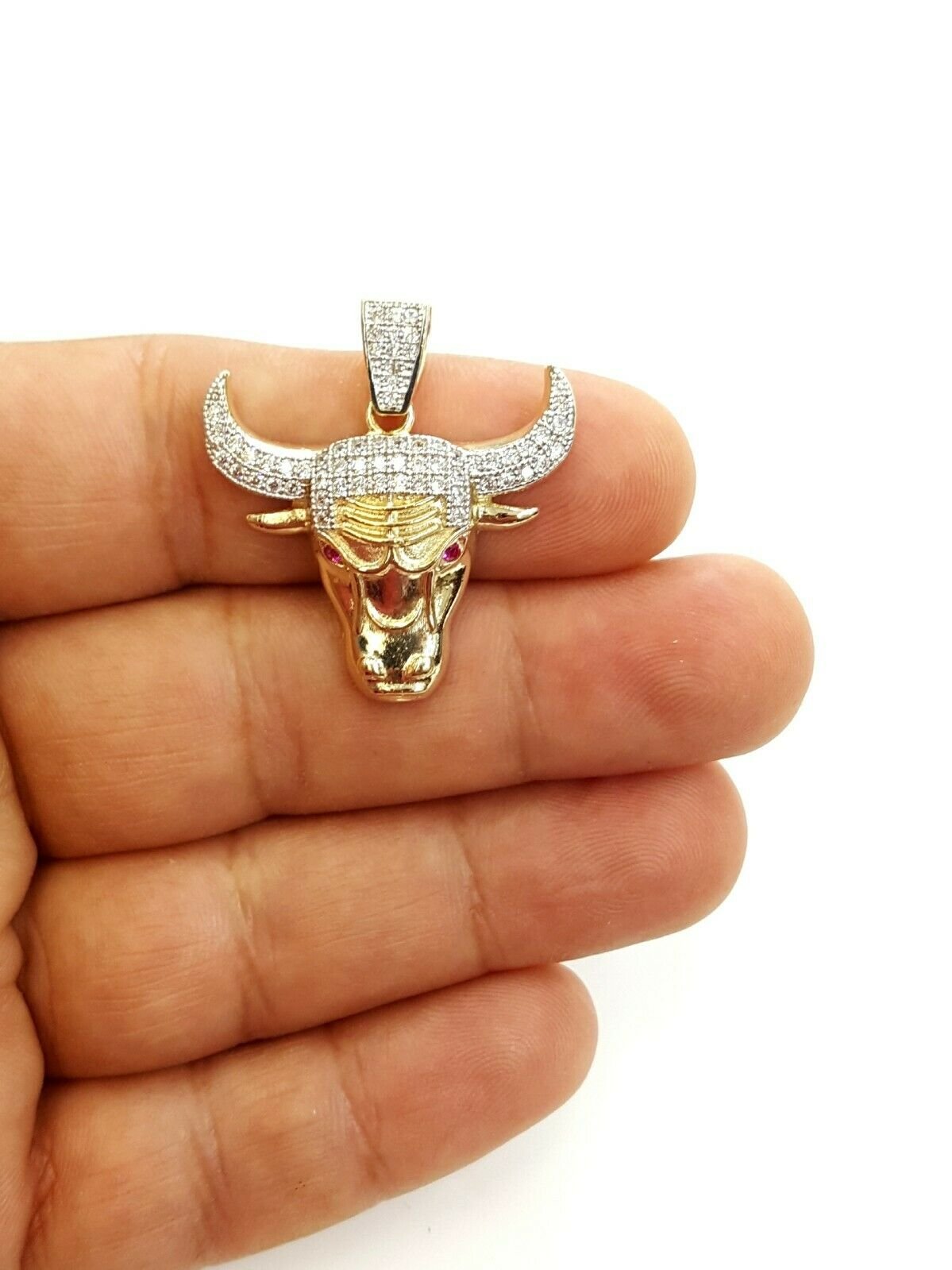 14k yellow gold Taurus bull zodiac pendant charm with cubic zirconia.