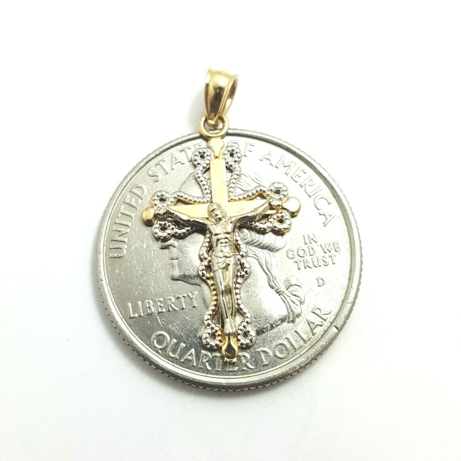 Beautiful New 14k two tone Gold cross with jesus pendant.