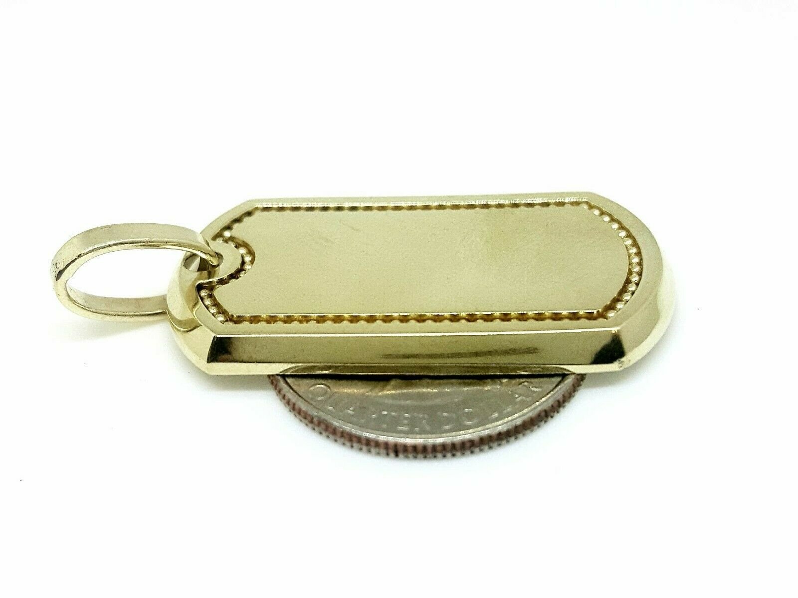 REAL 10K Yellow Gold. Polished, Shiny6.7 grams.1.51 inches top to bottom without bail.0.85 inches left to right. Please refer to the photo of the item next to a quarter for comparison purposes Please ask me any questions you may have before making a purchase.