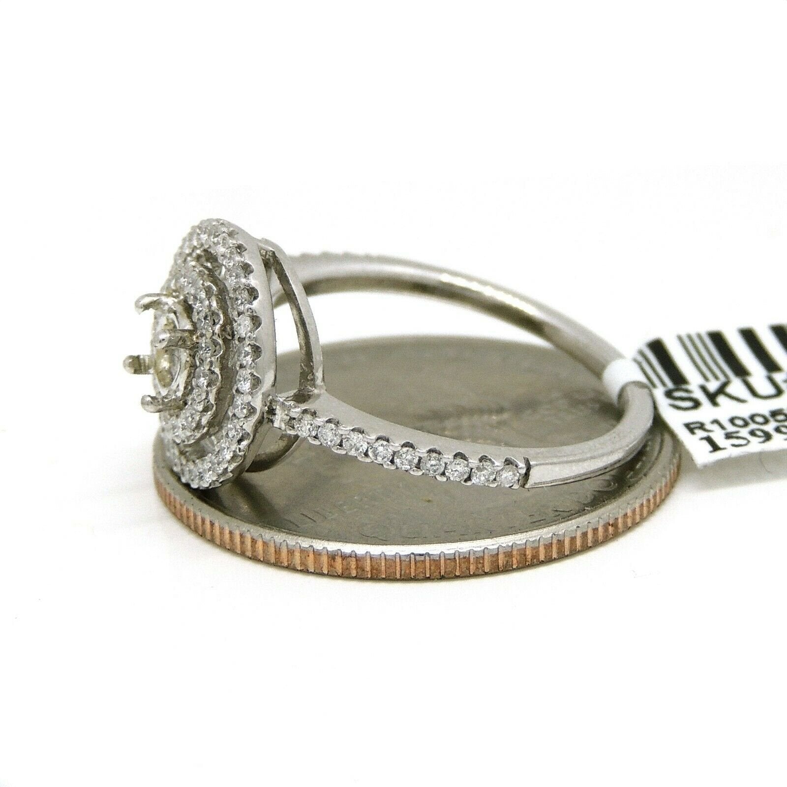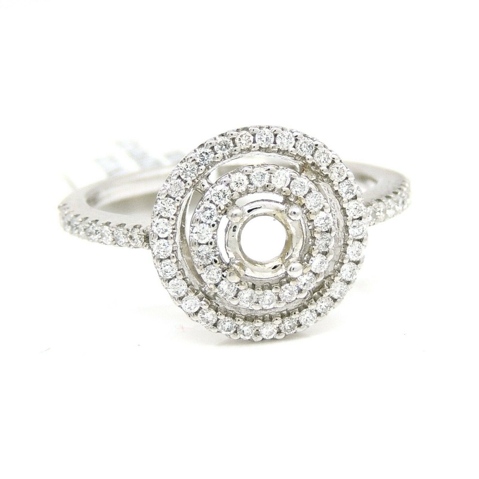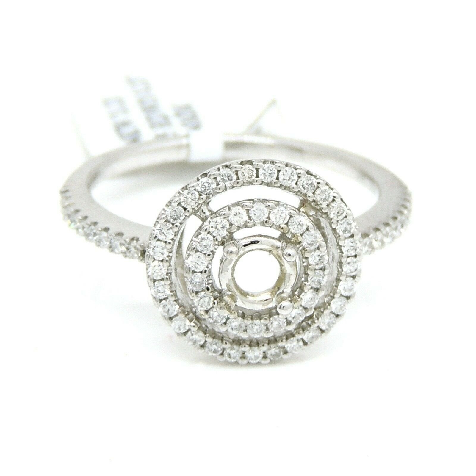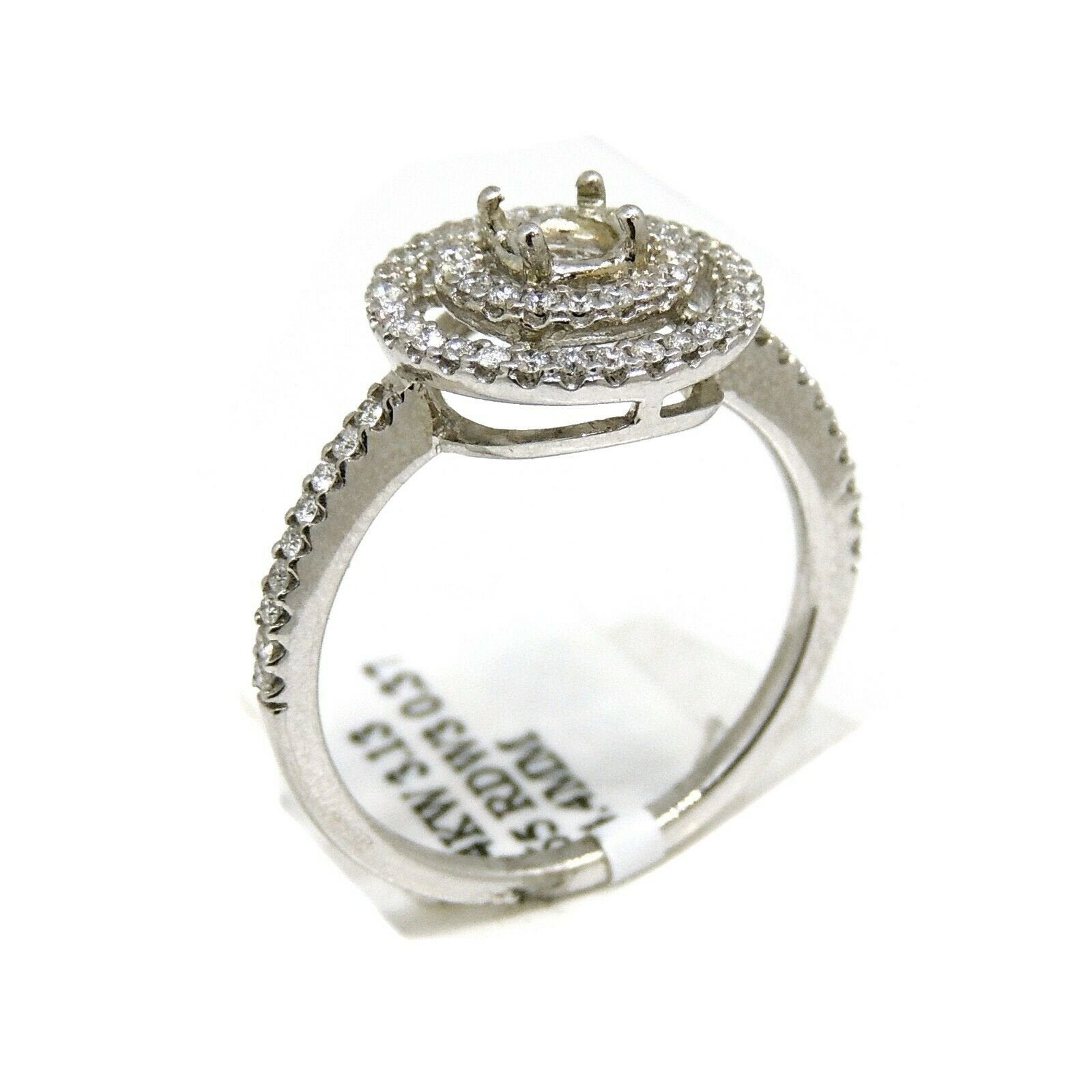 p.p1 {margin: 0.0px 0.0px 8.0px 0.0px; font: 17.0px Helvetica; color: #000000}span.s1 {font-family: 'Helvetica'; font-weight: normal; font-style: normal; font-size: 17.00pt}Item Description:This is a brand new 14k solid white gold double halo diamond semi mount ring with 0.37ct. total weight of round diamond.This ring is size 6.5Ring top size 12mmclarity: SI1-SI2Color:G-HCenter stone shape and size: Round, 4.4mm (not included).It is well made and has a strong structure.This ring weighs 3.1 grams. Please refer to the photo of the item next to a quarter for comparison purposes.Ask me any questions you may have before make a purchase.      Shipping:Your order will be professionally packed and shipped. US free shipping is for the 48 Continental states. For shipping to Alaska, Hawaii and Puerto Rico please contact us for a quote. We also offer overnight shipping for the cost of $19.99 which the estimated delivery time is one business day. Return Policy: 30 Day Money Back Guarantee We want your online shopping experience to be risk free. With our hassle-free return policy, if you are not completely satisfied with your purchase, simply ship the item back to us in its original, unused condition (including all original packaging and/or tags) within 14 days for a full refund, less shipping costs. Please email us for a return authorization number prior to shipping the item back.Be sure to add me to your favorites list!Check out my other items!Buy with confidence!