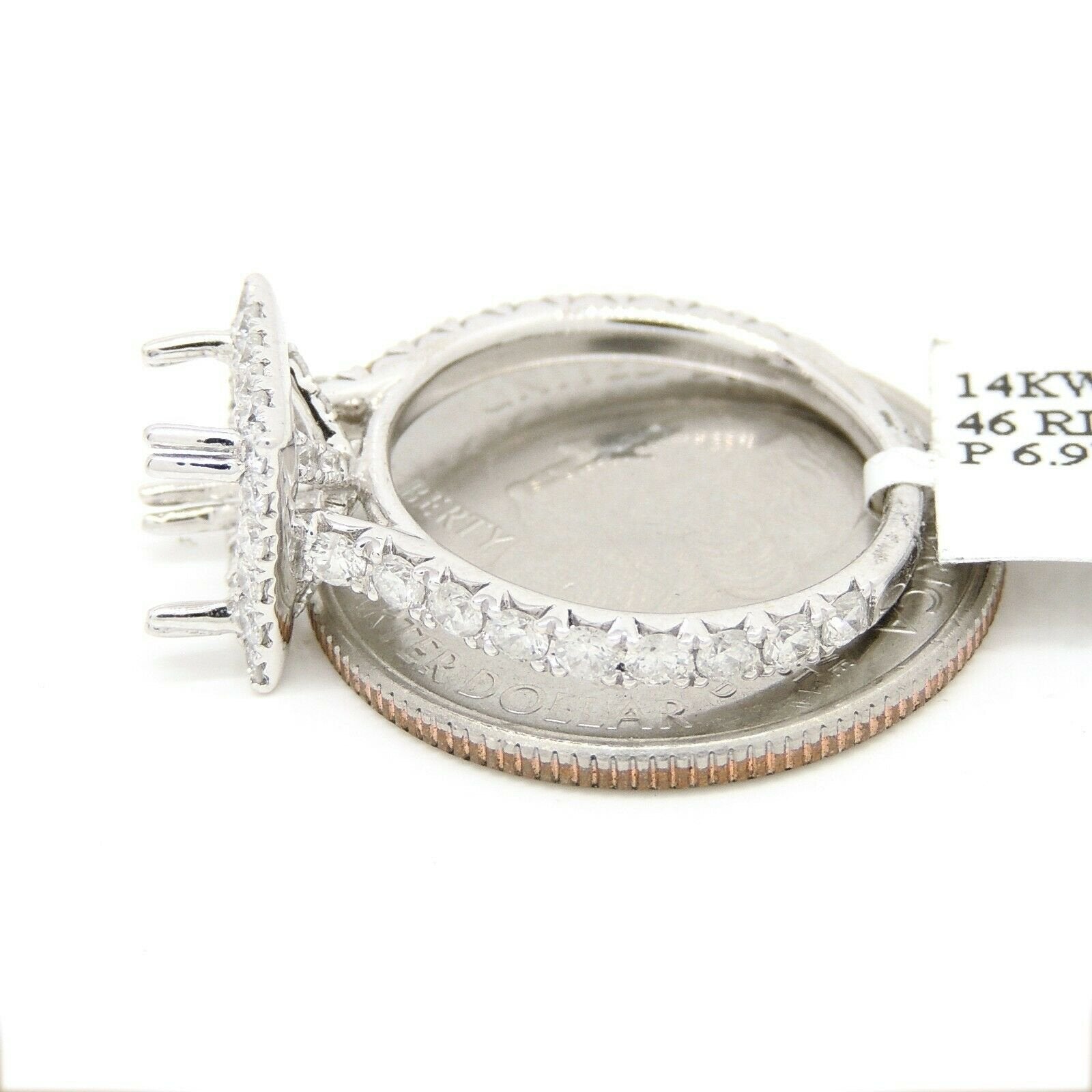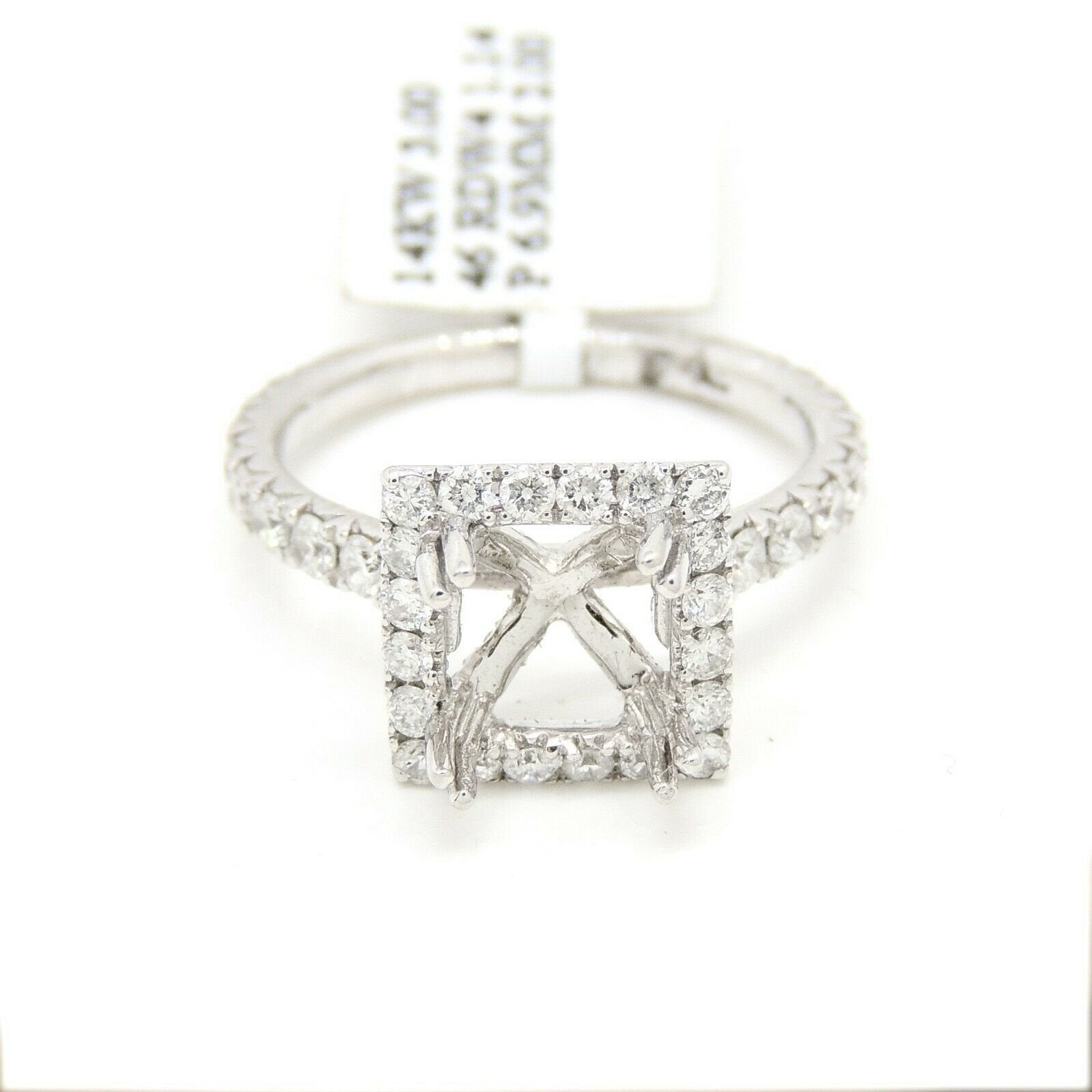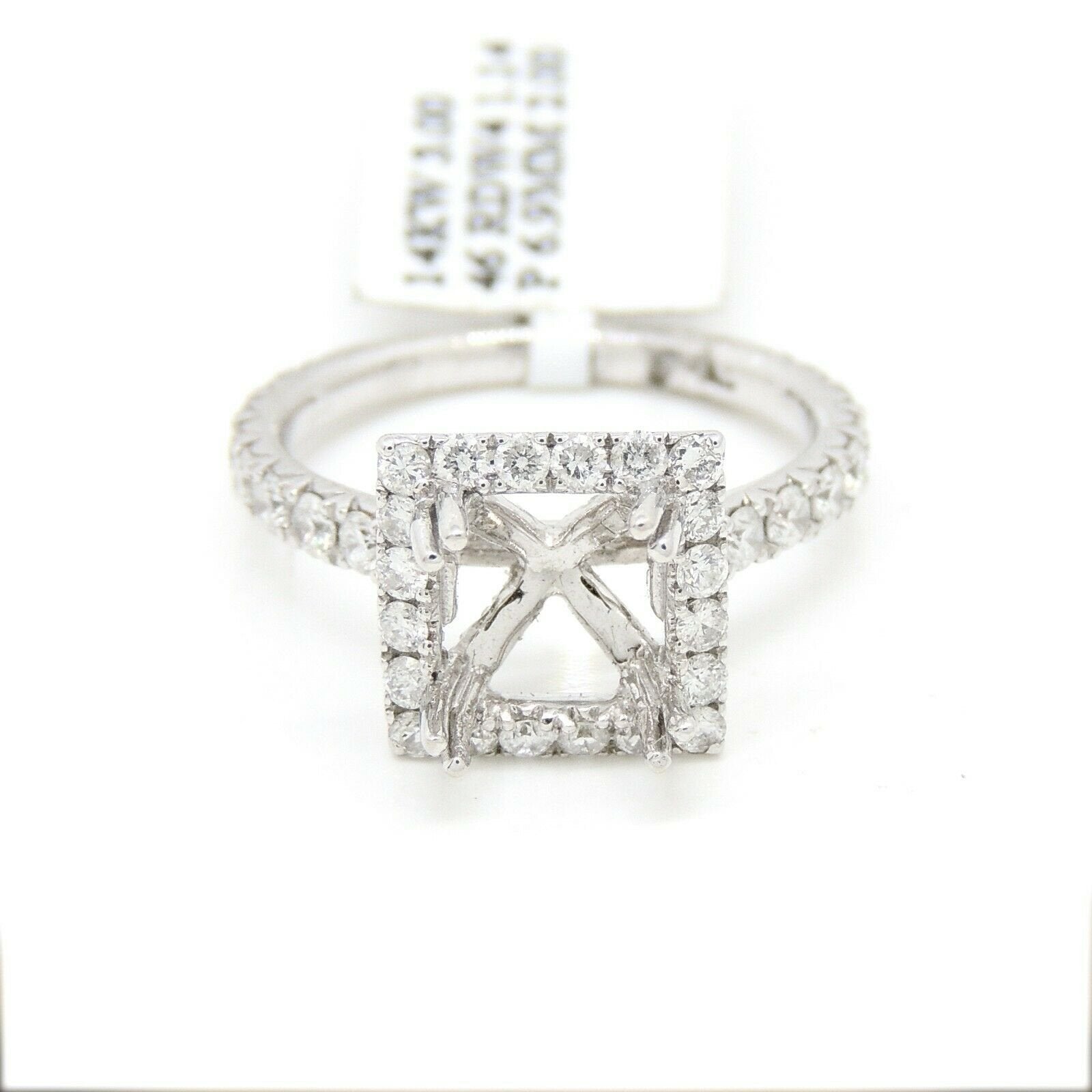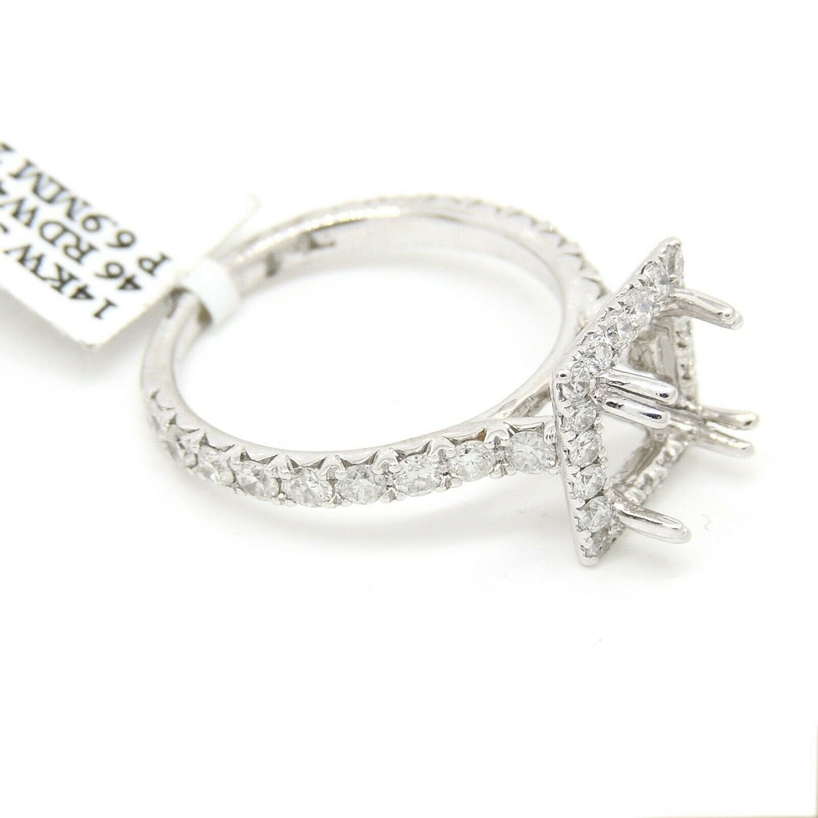 Item Description: This is a brand new 14k solid white gold halo diamond semi mount ring with 1.14ct. total weight of round diamond.