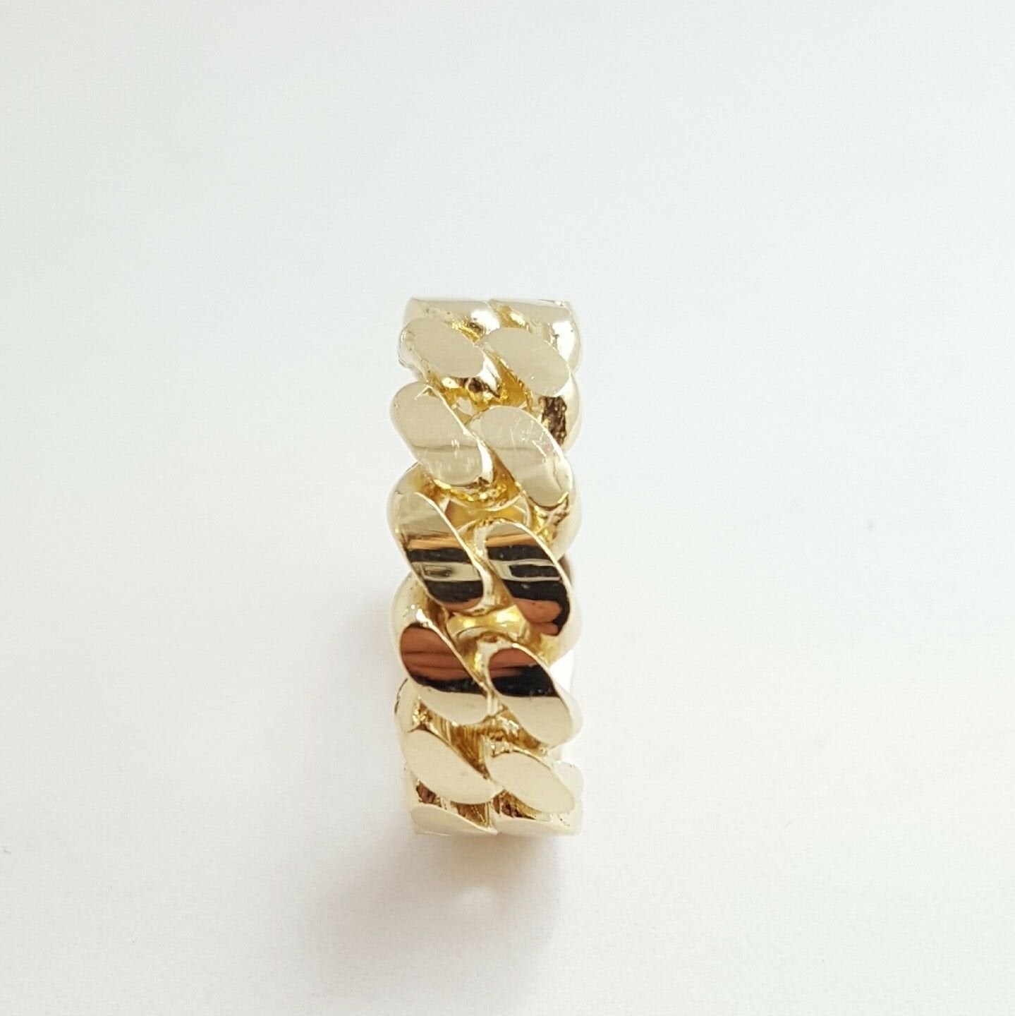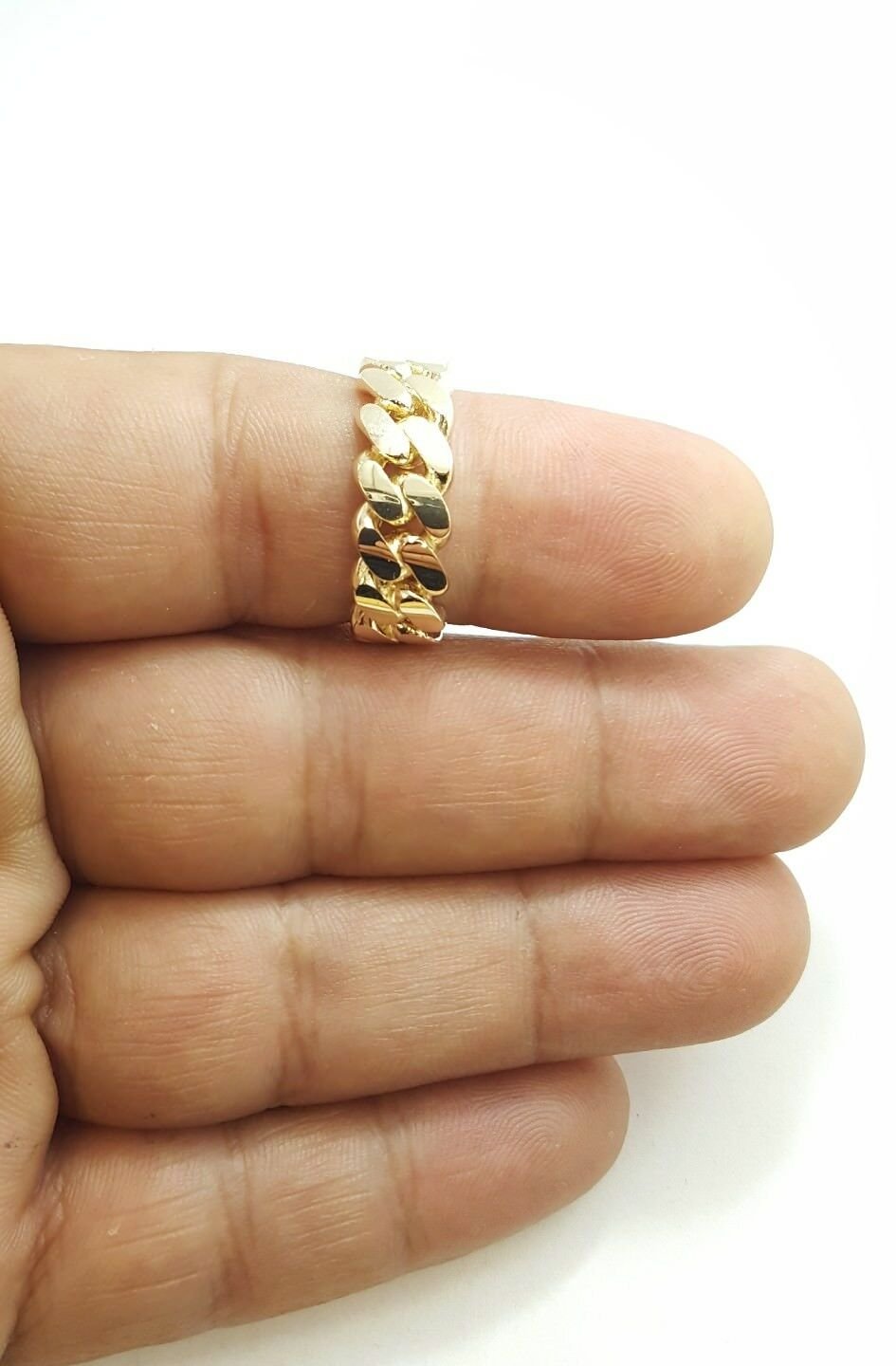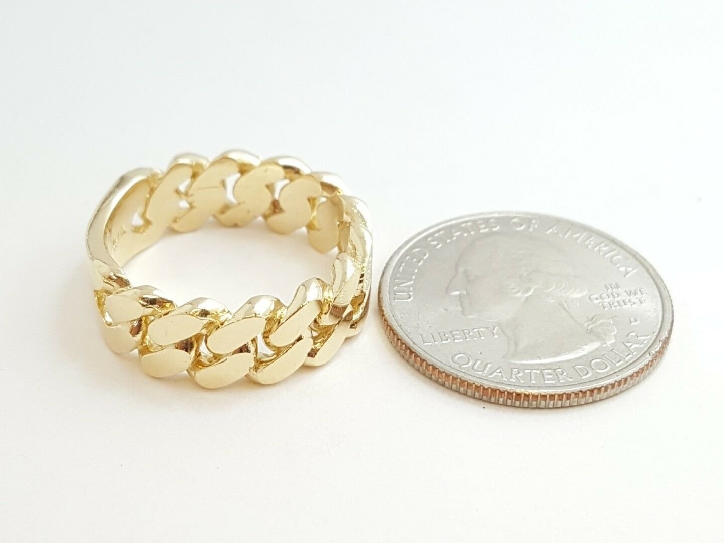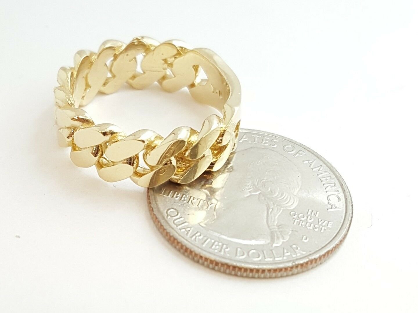 14K Yellow Solid Gold Cuban link Band Ring 7.9mm Size 10 Solid gold band, not hollow. Solid 14K gold, not plated. Nicely polished and shiny. Stamped 14K for Authenticity. Weight - 8.8 Grams.