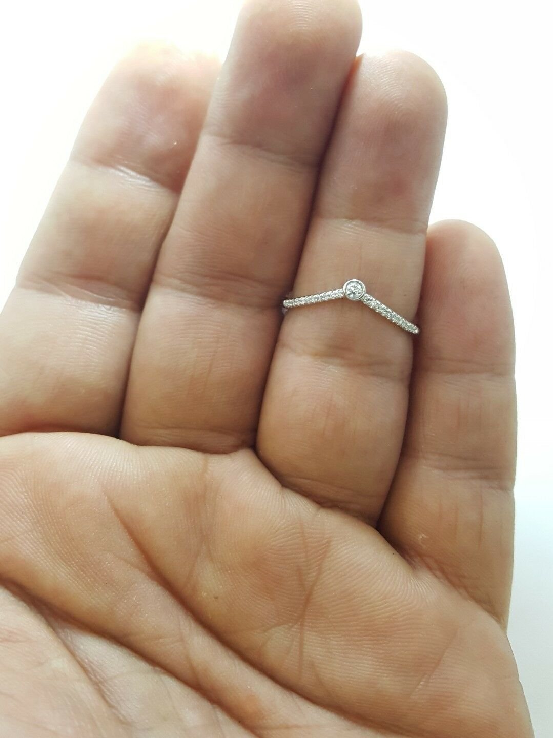 Item Description:Beautiful 14k white gold genuine diamond curved chevron Ring.This ring is also available in yellow gold and rose gold.This is a great looking ring. It features 0.09Ct.TW of round diamonds.Total number of diamonds are 23pcs.This ring measures 1.5mm wide (widest point).It stands 2.50mm off the finger.They are set in solid 14K gold giving this a very attractive look. It Weighs 1.40 grams.It is currently sized to fit a size 7.25 finger. look no more, this is perfect for special occasions or everyday wear. Shipping:Your order will be professionally packed and shipped. US free shipping is for the 48 Continental states. For shipping to Alaska, Hawaii and Puerto Rico please contact us for a quote. We also offer overnight shipping for the cost of $25.00 which the estimated delivery time is one business day.Return Policy: 30 Day Money Back Guarantee We want your online shopping experience to be risk free. With our hassle-free return policy, if you are not completely satisfied with your purchase, simply ship the item back to us in its original, unused condition (including all original packaging and/or tags) within 14 days for a full refund, less shipping costs. Please email us for a return authorization number prior to shipping the item back.Be sure to add me to your favorites list!Check out my other items!Buy with confidence!