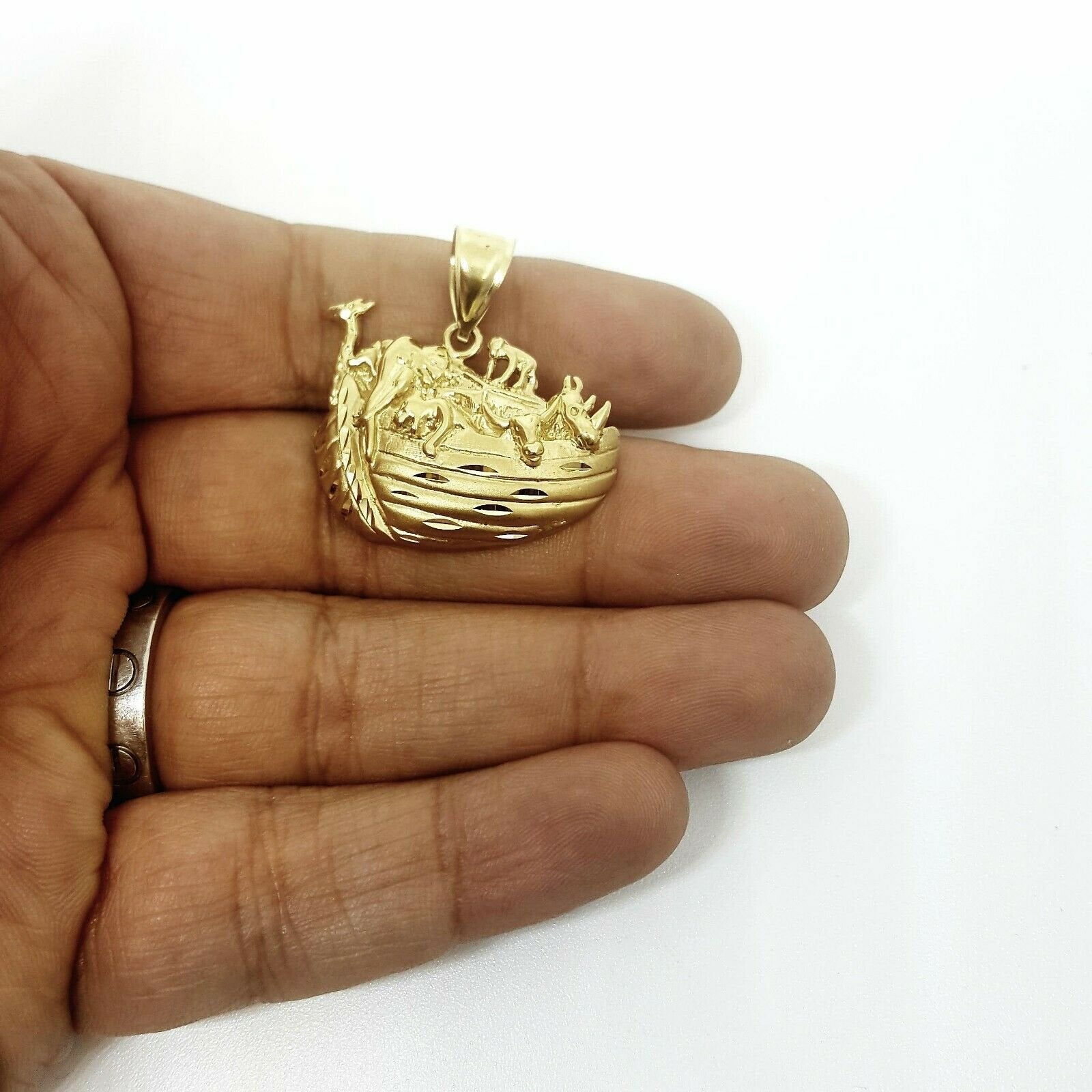 14k yellow gold Noah's Ark ship pendant charm.